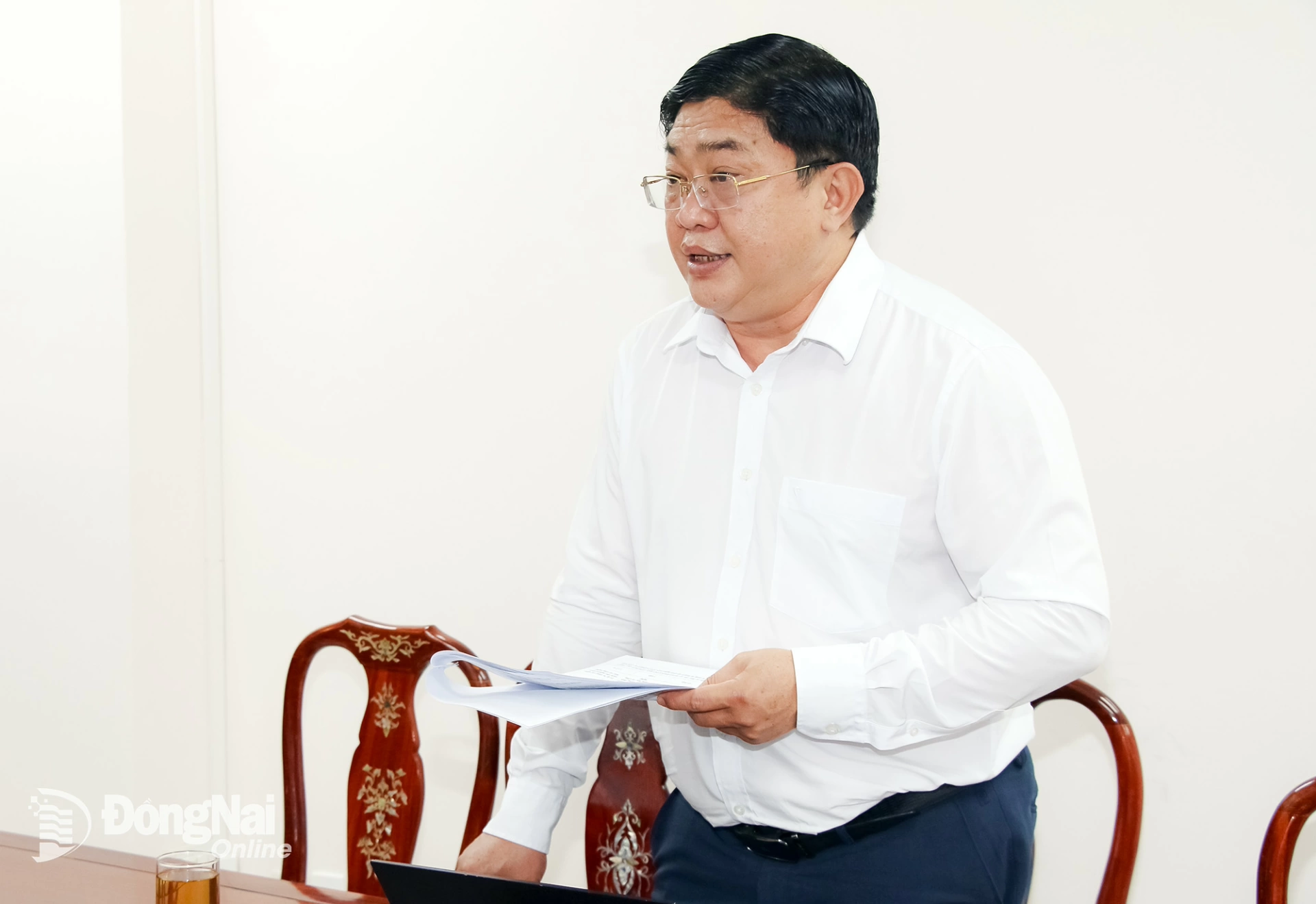 | Ủy viên Ban Thường vụ Tỉnh ủy, Phó Chủ tịch UBND tỉnh Đồng Nai Lê Trường Sơn chủ trì buổi làm việc. Ảnh: Hải Quân |