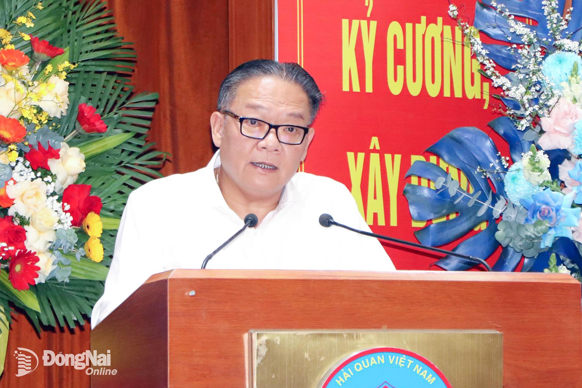 | Chi cục trưởng Chi cục Hải quan khu vực 18 Lê Văn Thung báo cáo công tác hoạt động tại hội nghị. Ảnh: Ngọc Liên |