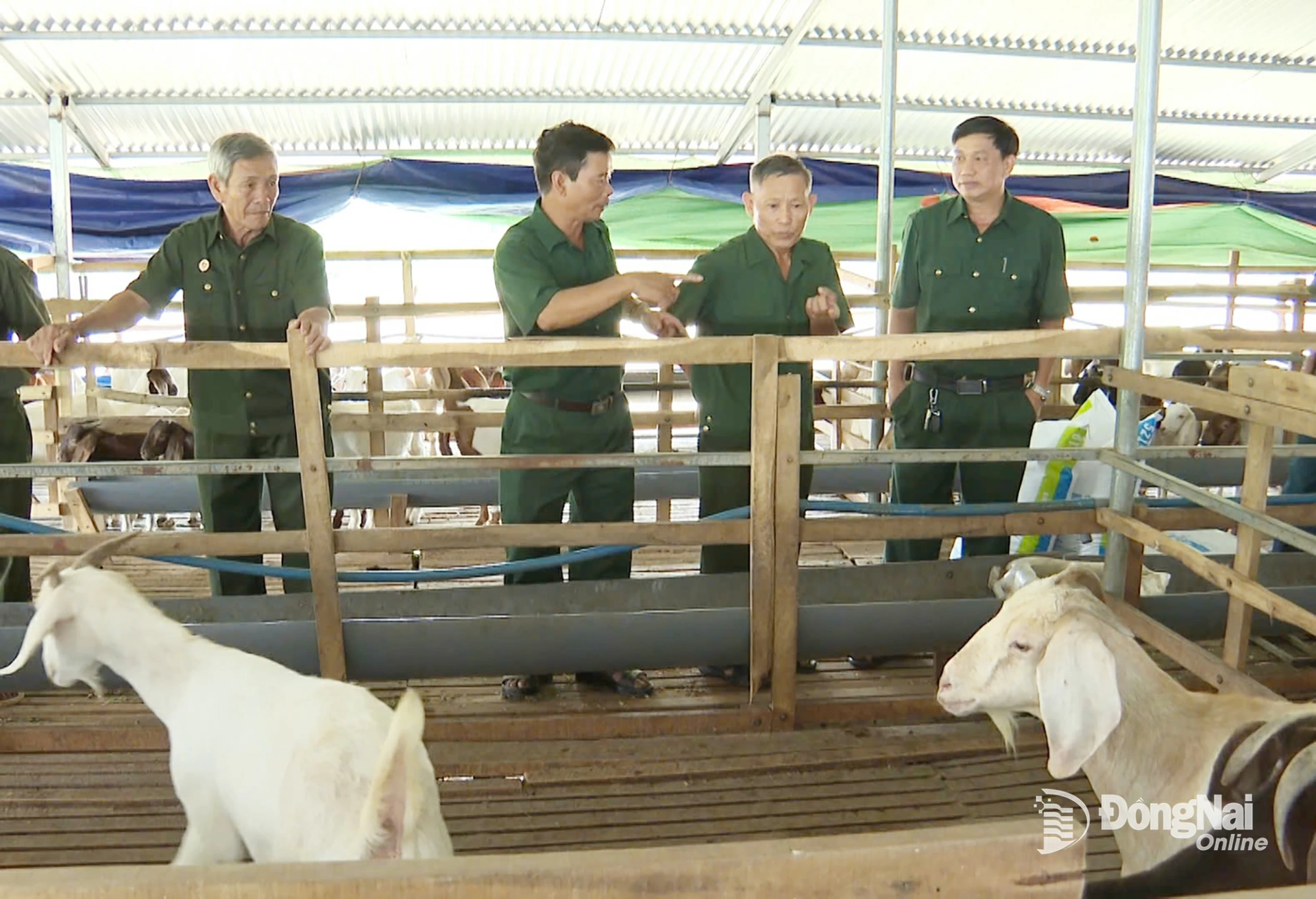 | Hội viên cựu chiến binh xã Xuân Lộc tham quan trại dê ông Lê Xuân Điềm. Ảnh Đặng Hùng |