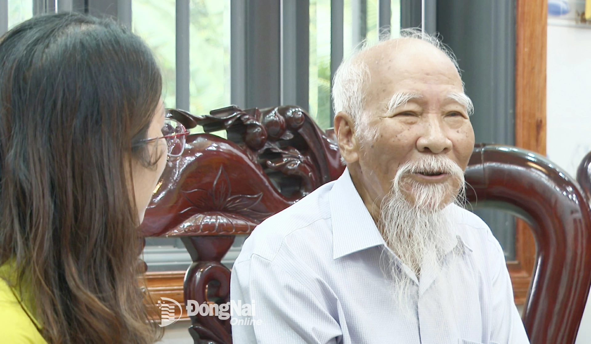 | Đảng viên lão thành Huỳnh Thế Thiện (xã Thiện Hưng, tỉnh Đồng Nai) chia sẻ những ngày vui tháng Tám năm 1945. Ảnh: Viết Bằng |