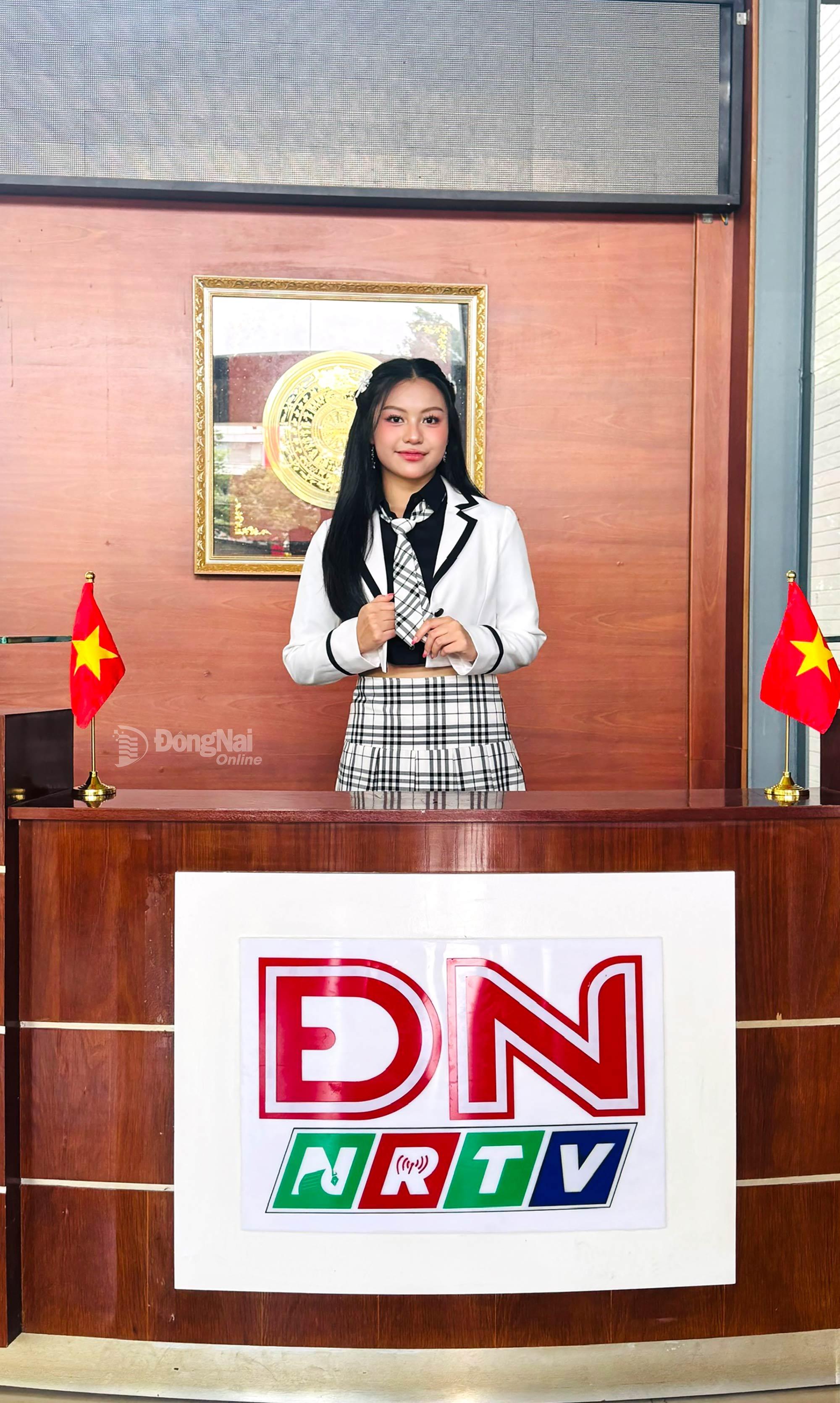 | Ca sĩ nhí Ái Khanh giao lưu cùng 2 MC Thư Kỳ, Trà My tại phim trường S5 của Báo và Phát thanh, Truyền hình Đồng Nai. Ảnh: Xuân Phú |