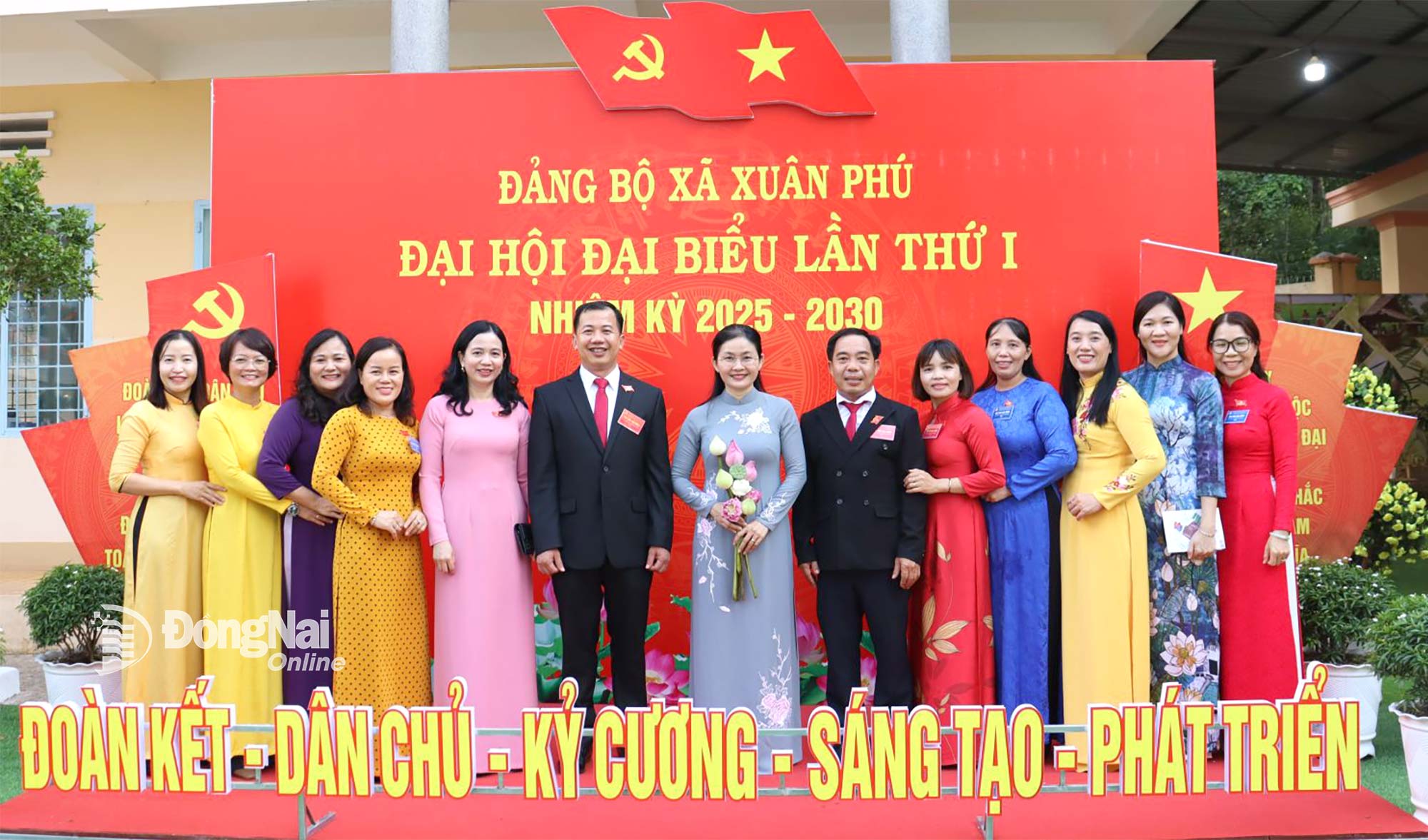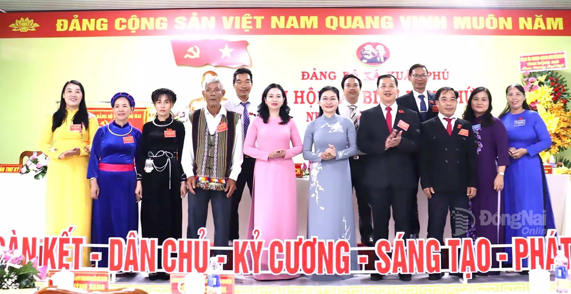 | Đồng chí Tôn Ngọc Hạnh, Ủy viên dự khuyết Trung ương Đảng, Phó Bí thư Thường trực Tỉnh ủy, Chủ tịch HĐND tỉnh Đồng Nai và các đại biểu chụp hình với Ban Chấp hành Đảng bộ xã Xuân Phú nhiệm kỳ 2025-2030. Ảnh: Nguyệt Hà |