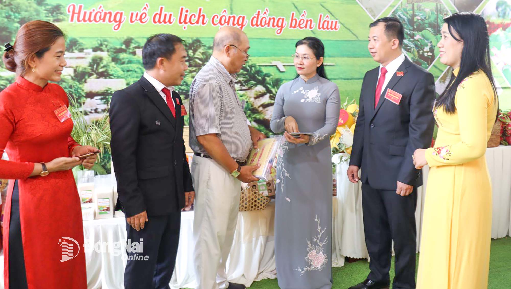 | Đồng chí Tôn Ngọc Hạnh, Ủy viên dự khuyết Trung ương Đảng, Phó Bí thư Thường trực Tỉnh ủy, Chủ tịch HĐND tỉnh Đồng Nai trao đổi về các mô hình kinh tế trưng bày bên lề đại hội. Ảnh: Nguyệt Hà |