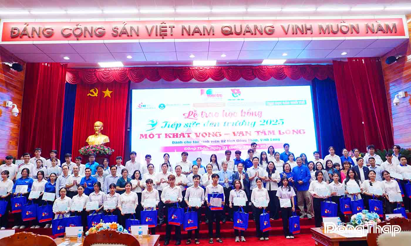 Tỉnh Đồng Tháp là điểm trao thứ 9 trong Chương trình học bổng “Tiếp sức đến trường” năm 2025 dành cho tân sinh viên thuộc Chương trình “Vì ngày mai phát triển” lần thứ 619 của Báo Tuổi Trẻ. Chương trình học bổng “Tiếp sức đến trường” năm 2025 của Báo Tuổi Trẻ dành cho hơn 1.000 tân sinh viên có hoàn cảnh khó khăn của cả nước với tổng kinh phí khoảng 20 tỷ đồng.