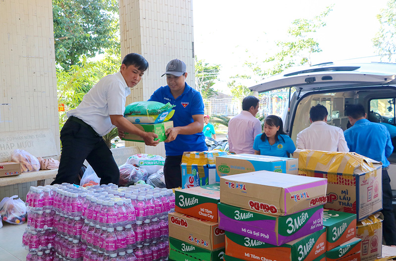 Nhiều tổ chức, đơn vị, mạnh thường quân nhiệt tình ủng hộ gạo, mì, nhu yếu phẩm để trao tặng người dân xã Ba Sao có nhà bị thiệt hại do giông lốc