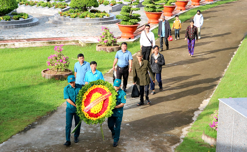 Không chỉ thể hiện sự quan tâm, tri ân của Đảng, Nhà nước qua hoạt động thăm hỏi, tặng quà cho người có công với cách mạng mà tại các Nghĩa trang liệt sĩ trong tỉnh cũng được trang hoàng khang trang, ấm áp để đón thân nhân các anh hùng liệt sĩ đến viếng mộ. Tại Nghĩa trang liệt sĩ tỉnh (phường Mỹ Trà), những ngày cận kề 27/7, nhiều Đoàn thân nhân liệt sĩ đã đến thắp hương, dâng hoa tưởng nhớ người thân. Ngồi bên mộ chồng, bà Nguyễn Thị Tây (83 tuổi) lặng lẽ đốt nén nhang và bùi ngùi nhớ về những kỷ niệm đối với người chồng quá cố - liệt sĩ Nguyễn Văn Kiệu hy sinh năm 1970.