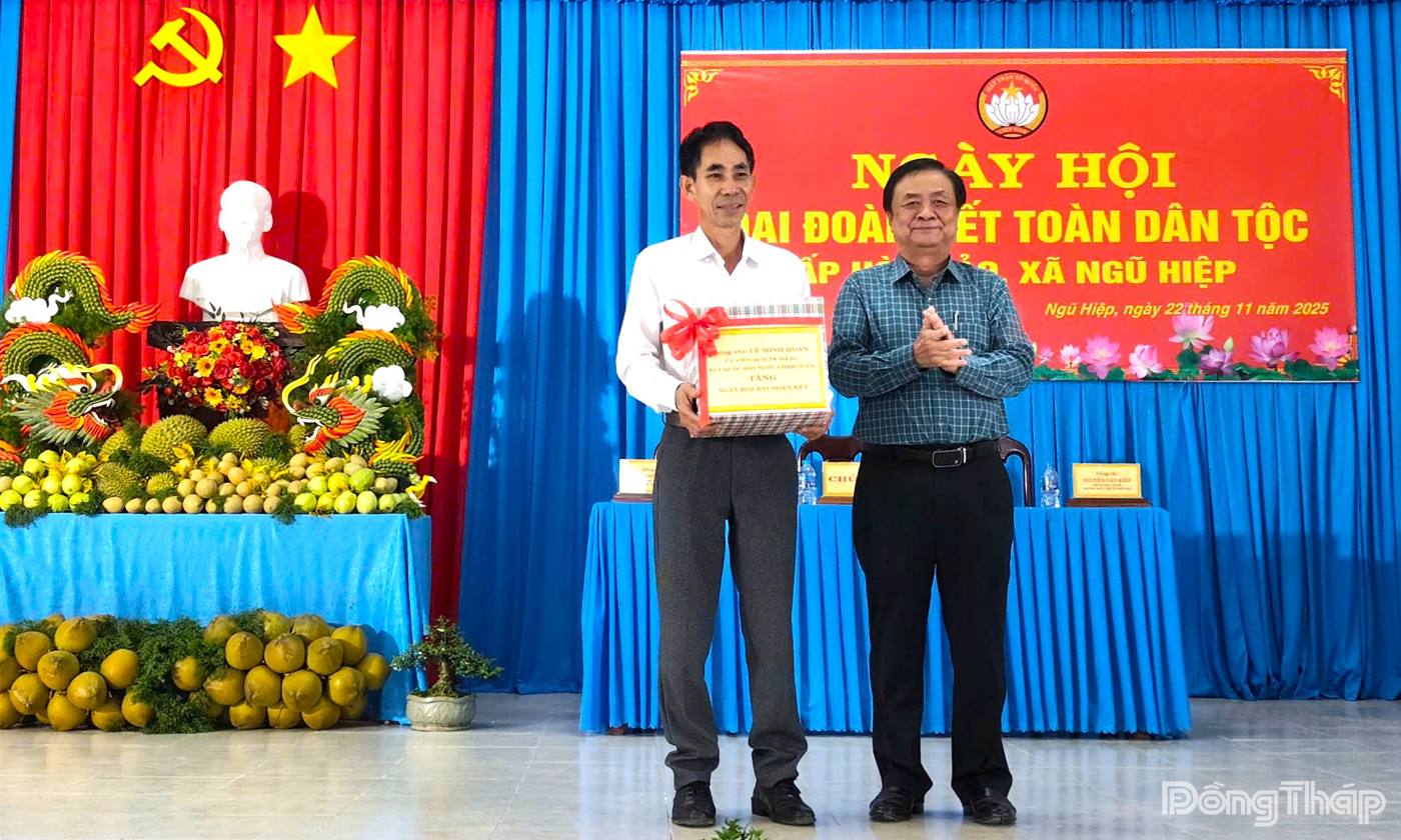 Dịp này, Phó Chủ tịch Quốc hội Lê Minh Hoan trao 50 phần quà cho hộ nghèo, hộ cận nghèo, hộ có hoàn cảnh khó khăn. Ủy ban Trung ương MTTQ Việt Nam tặng 10 suất quà cho hộ gia đình chính sách; Tỉnh ủy Đồng Tháp tặng quà cho Ban Công tác Mặt trận ấp Hòa Hảo.