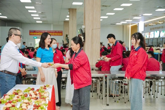Người lao động Công ty TNHH Điện tử Chilisin Việt Nam (khu công nghiệp VSIP) được thụ hưởng bữa cơm Công đoàn.