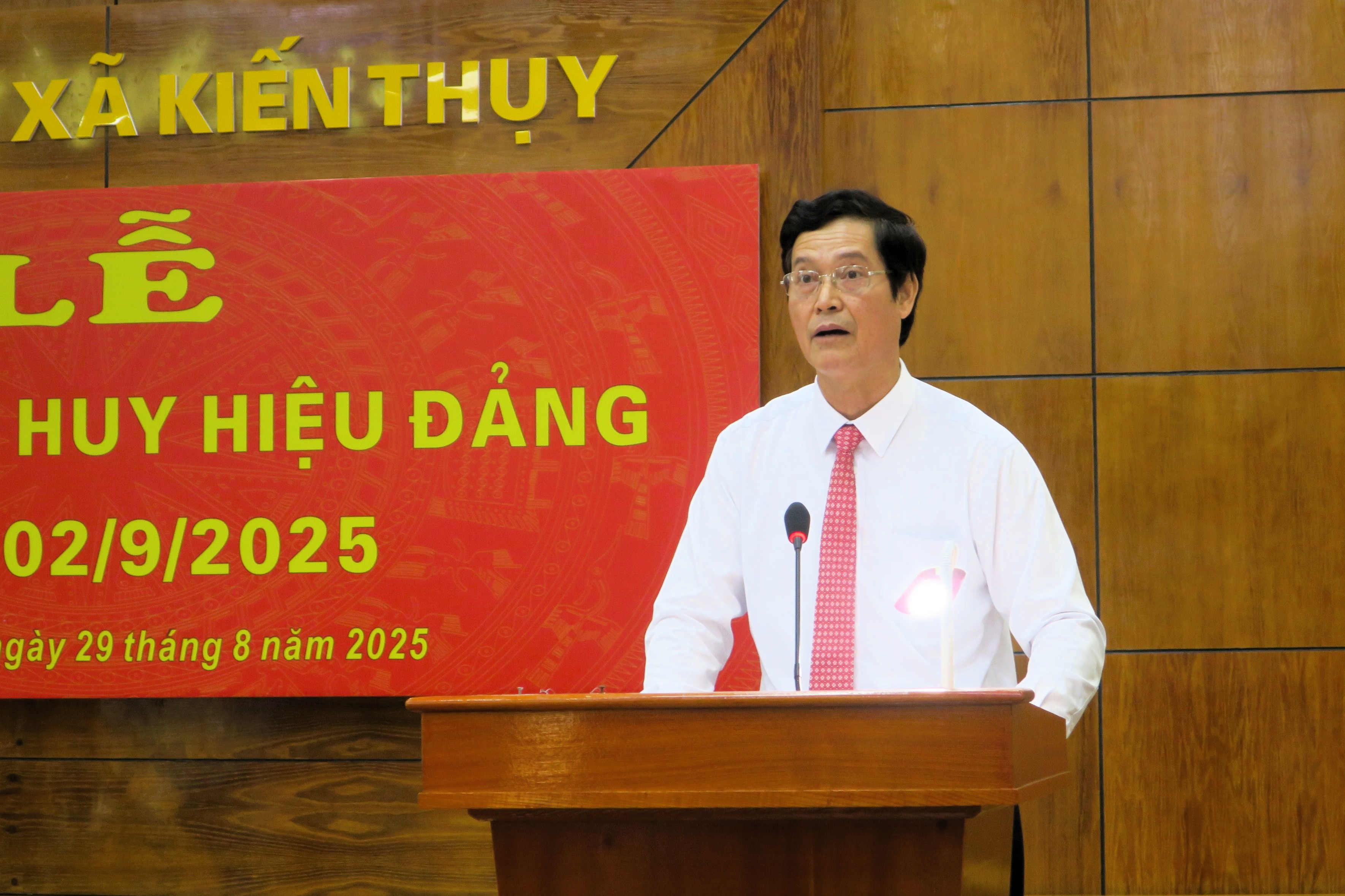 Phát biểu tại Lễ trao tặng, đồng chí Nguyễn Minh Phương, Bí thư Đảng ủy, Chủ tịch HĐND xã ghi nhận những đóng góp tích cực của các đồng chí đảng viên trong quá trình phát triển kinh tế - xã hội, quốc phòng – an ninh địa phương. Trong những năm qua, dù tuổi tác và sức lực khác nhau, quá trình, địa vị công tác, vị trí xã hội, điều kiện kinh tế, hoàn cảnh gia đình khác nhau, nhưng các bác, các đồng chí đã chung sức chung lòng, đồng tâm hiệp lực cùng với toàn Đảng bộ, chính quyền và các tầng lớp nhân dân, xây dựng xã Kiến Thụy không ngừng phát triển, ngày càng toàn diện, tiến bộ, vững vàng trong sự nghiệp công nghiệp hóa – hiện đại hóa đất nước.