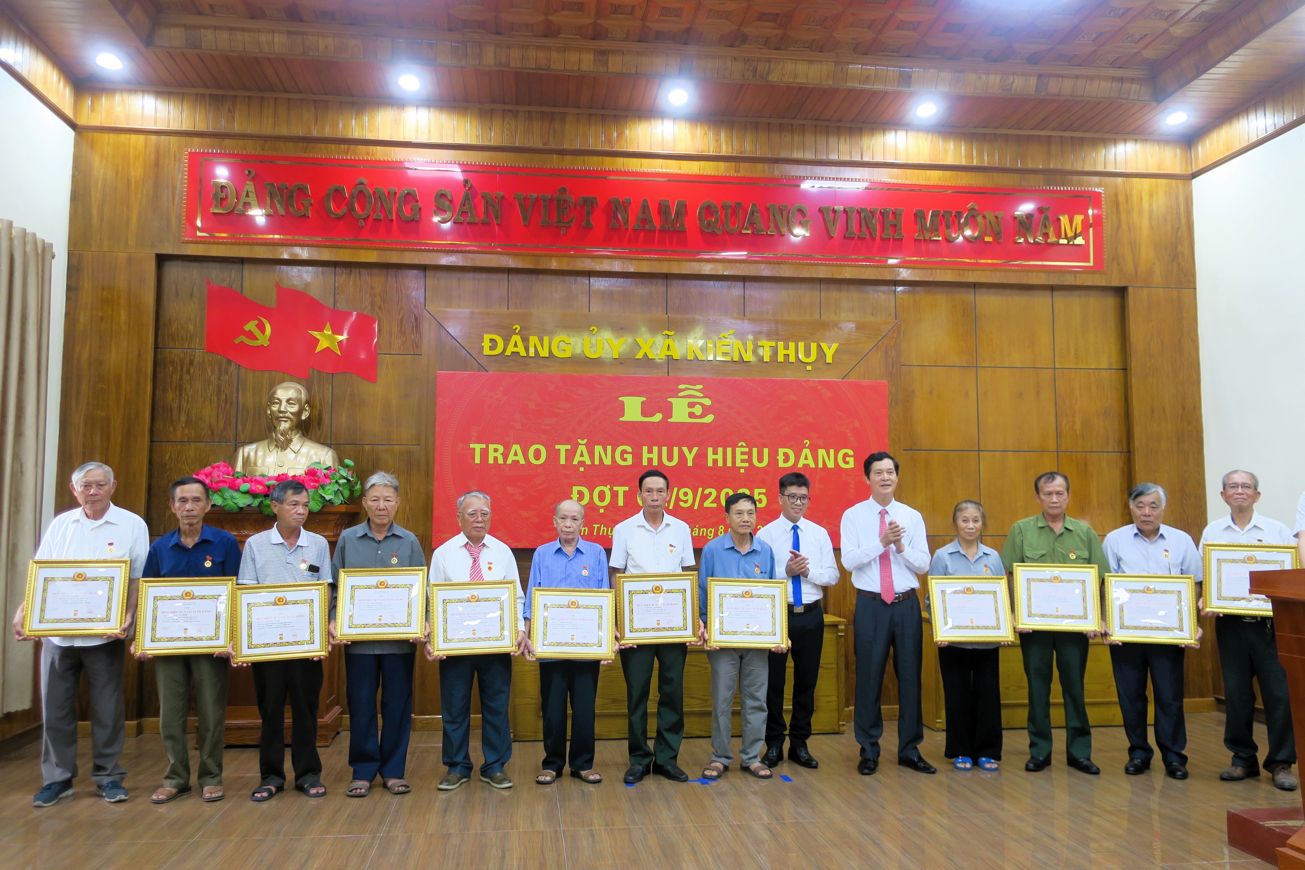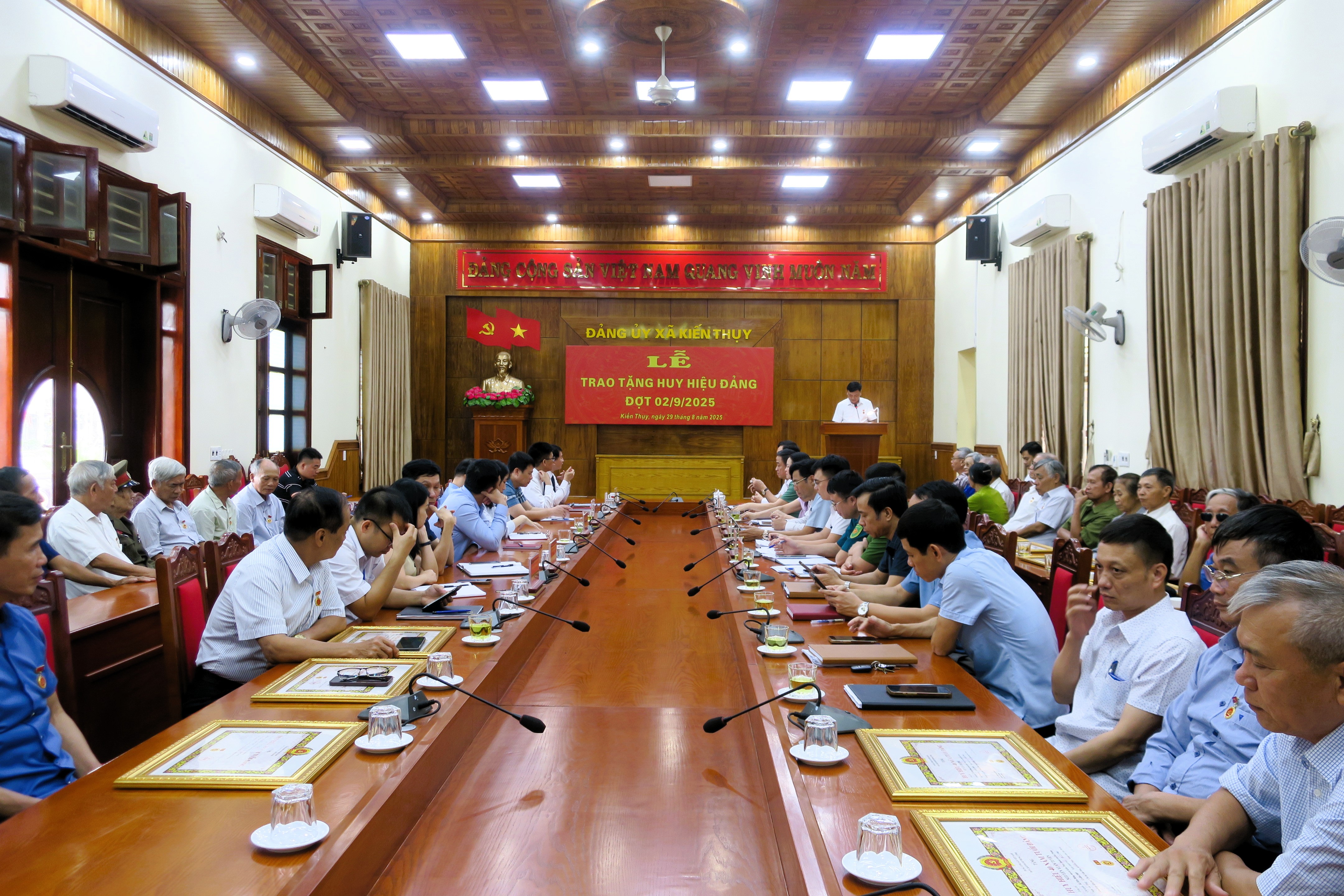 (Haiphong.gov.vn) - Chiều 29/8, Đảng ủy xã Kiến Thụy tổ chức Lễ trao tặng Huy hiệu Đảng đợt 02/9/2025. Tham dự Lễ trao tặng có đồng chí Nguyễn Đức Tuấn, Ủy viên Ban Thường vụ Thành ủy, Phó Chủ tịch Thường trực Ủy ban MTTQ Việt Nam thành phố (phụ trách Đảng bộ xã); cùng đại diện lãnh đạo các Ban, ngành thành phố; đại diện các cơ quan, đơn vị, địa phương và cá nhân liên quan.
