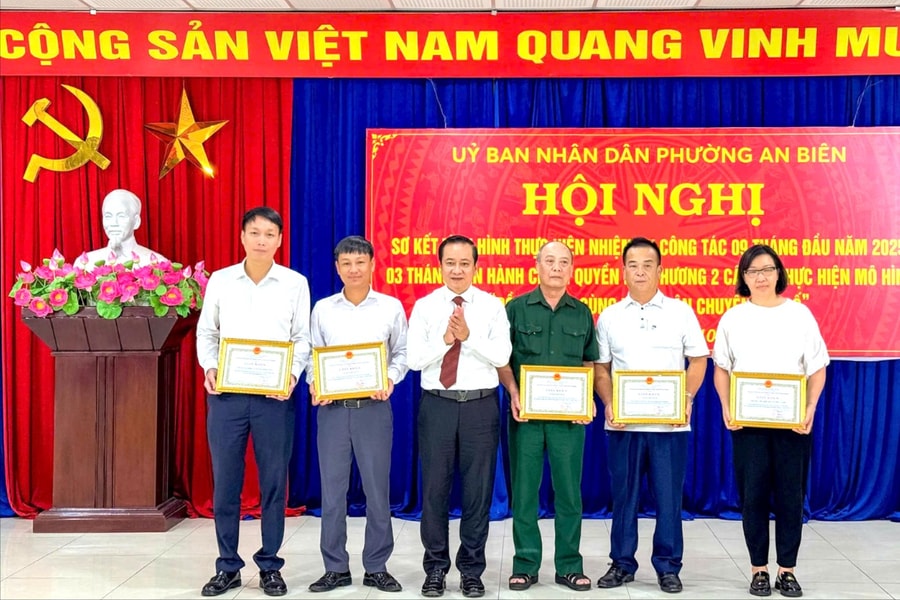 Tại hội nghị sơ kết tình hình thực hiện nhiệm vụ công tác 9 tháng năm 2025; 3 tháng vận hành mô hình chính quyền địa phương 2 cấp và thực hiện mô hình “Đồng hành cùng nhân dân chuyển đổi số” sáng 6/10, UBND phường An Biên đã biểu dương, khen thưởng nhiều tập thể, cá nhân có thành tích xuất sắc trong thực hiện nhiệm vụ thời gian qua.
