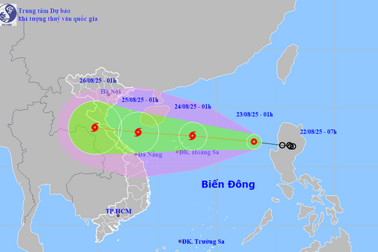Ngày 25/8, bão sẽ di chuyển vào đất liền khu vực Trung Bộ nước ta. Do ảnh hưởng của bão, trên khu vực phía Bắc của biển Đông (bao gồm đặc khu Hoàng Sa) từ ngày 23/8 có gió mạnh cấp 6-7, sau tăng lên cấp 8-9, từ ngày 24/8 gió mạnh cấp 9-10, sóng cao từ 4-6m, vùng biển từ Thanh Hóa đến Đà Nẵng có gió bão mạnh cấp 8, vùng gần tâm bão cấp 11-12, giật cấp 15.