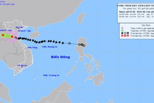 Hồi 4 giờ sáng nay 26/8, vị trí tâm áp thấp nhiệt đới ở vào khoảng 18,9 độ Vĩ Bắc; 104,5 độ Kinh Đông, trên khu vực Trung Lào. Sức gió mạnh nhất vùng gần tâm áp thấp nhiệt đới mạnh cấp 7 (50 - 61 km/giờ), giật cấp 9; di chuyển theo hướng Tây Tây Bắc với tốc độ 15 - 20 km/giờ.
