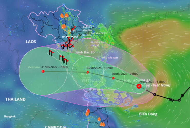 Theo Đài Khí tượng thủy văn thành phố Hải Phòng, hồi 16 giờ ngày 29/8, vị trí tâm áp thấp nhiệt đới ở vào khoảng 16,6 độ vĩ bắc;