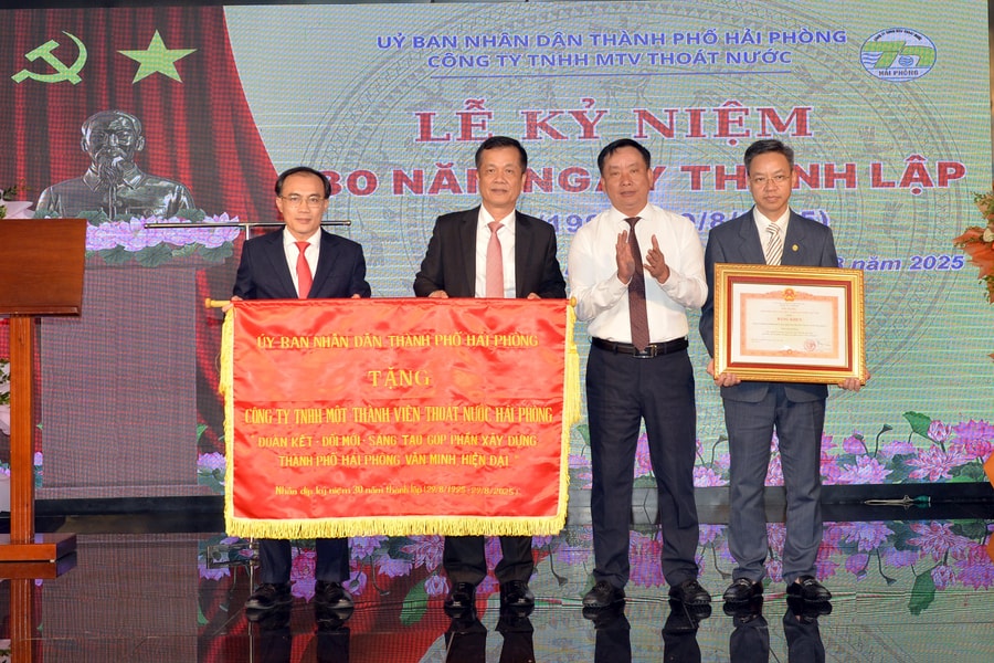 Nhân dịp này, Công ty TNHH một thành viên Thoát nước Hải Phòng vinh dự được Thủ tướng Chính phủ tặng bằng khen về thành tích công tác giai đoạn 2020 - 2024. Chủ tịch UBND thành phố tặng bức trướng mang dòng chữ “Đoàn kết - Đổi mới - Sáng tạo góp phần xây dựng thành phố Hải Phòng văn minh, hiện đại”; khen thưởng 3 tập thể và 12 cá nhân có nhiều đóng góp trong xây dựng và phát triển công ty.