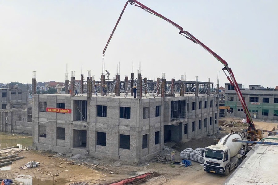 Ông Lê Mạnh Cường, Chỉ huy trưởng công trình cho biết, hiện nay, trên công trường luôn có gần 300 công nhân làm việc. Hàng chục máy móc, thiết bị được huy động, chia làm nhiều mũi thi công đồng thời nhiều hạng mục. Các hạng mục nhà ở, học văn hóa, học nghề thi công tương đối thuận lợi, riêng bể xử lý nước thải có kết cấu phức tạp hơn, đòi hỏi kỹ thuật cao.