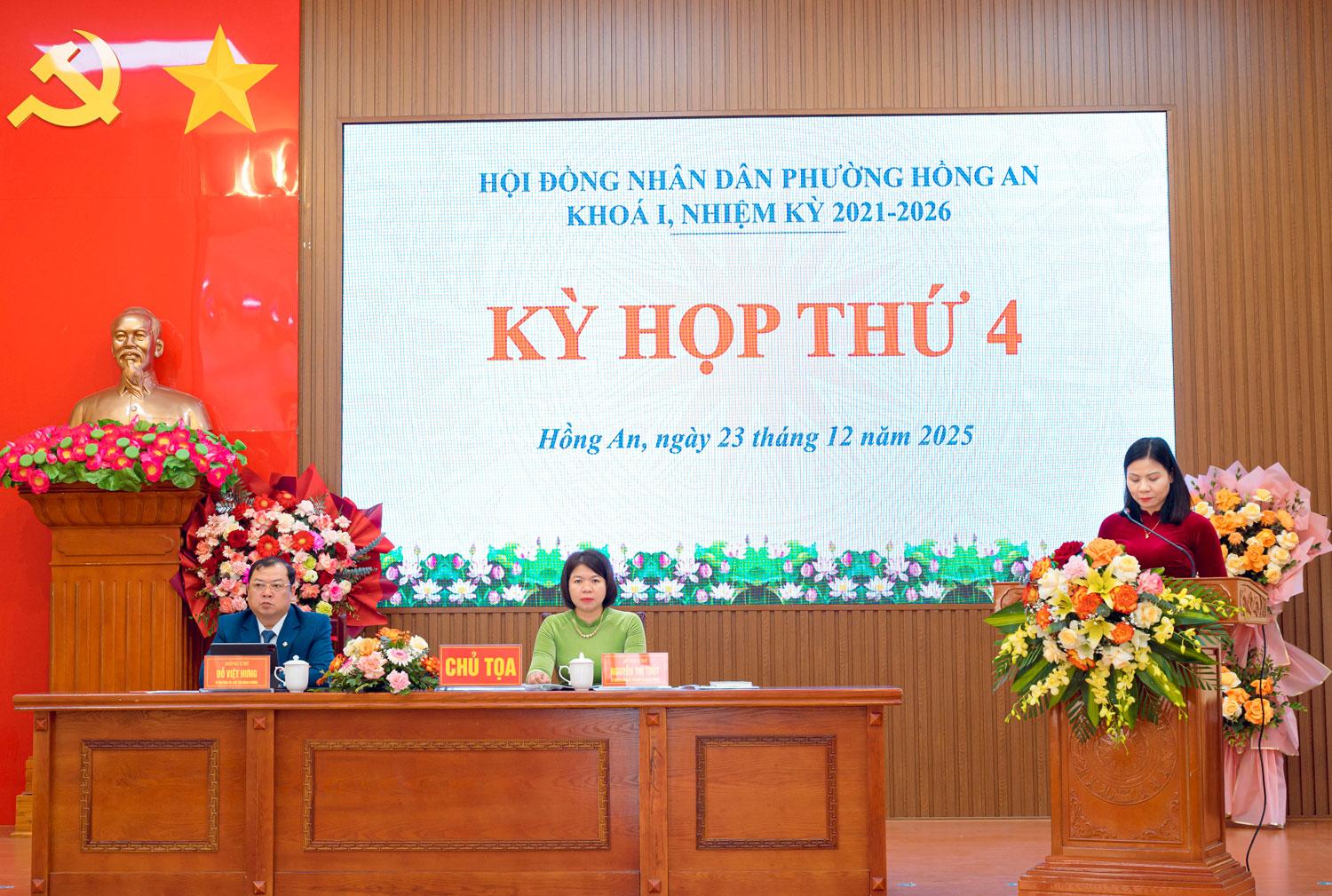 (Haiphong.gov.vn) - Ngày 23/12, HĐND phường Hồng An khóa I, nhiệm kỳ 2021-2026 tổ chức Kỳ họp thứ 4 - Kỳ họp thường lệ cuối năm 2025 nhằm đánh giá kết quả thực hiện nhiệm vụ phát triển kinh tế - xã hội, quốc phòng - an ninh năm 2025; đồng thời xem xét, quyết nghị các nội dung quan trọng thuộc thẩm quyền.