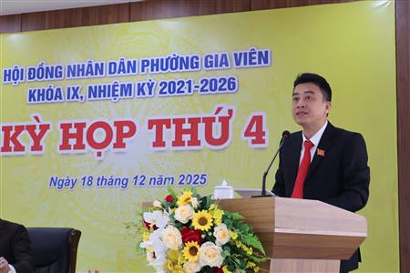 (Haiphong.gov.vn) - Ngày 18/12, Hội đồng nhân dân phường Gia Viên, khóa IX, nhiệm kỳ 2021–2026 tổ chức Kỳ họp thứ 4 nhằm xem xét, thảo luận và quyết nghị nhiều nội dung quan trọng liên quan đến kết quả thực hiện nhiệm vụ năm 2025 và phương hướng, nhiệm vụ năm 2026.