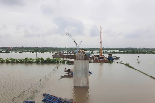 Cùng với đó, công trường thi công cầu vượt sông Thái Bình chịu ảnh hưởng của thủy triều, vào thời gian từ 18 giờ hôm trước đến khoảng 8 giờ hôm sau, mực nước lên cao, công nhân không thể thi công ban đêm. Mặt khác, do ảnh hưởng của cơn bão số 3 và cơn bão số 5, mực nước sông dâng cao cộng với thời tiết mưa kéo dài cũng khiến hệ thống đường công vụ bị ngập, xe vận chuyển bê tông và thép di chuyển khó khăn.