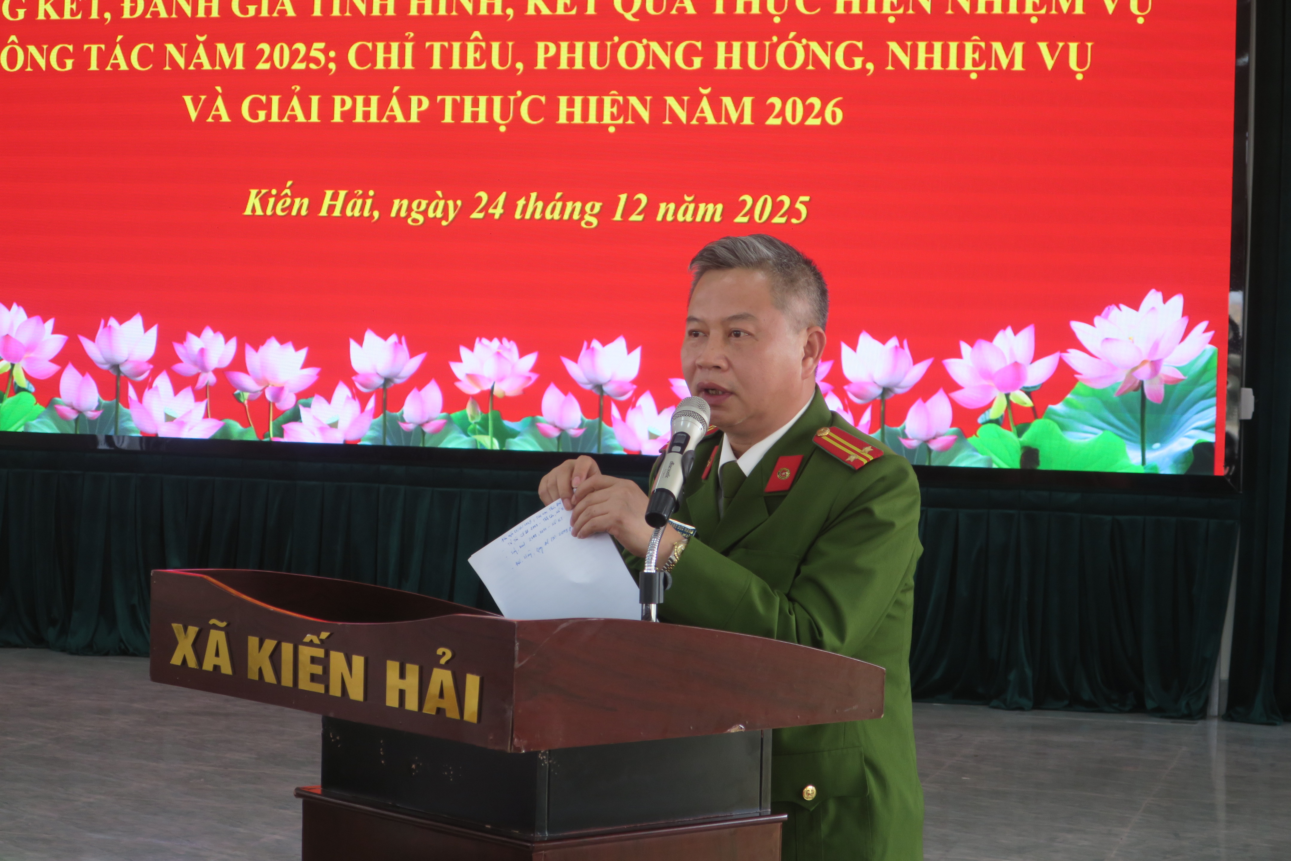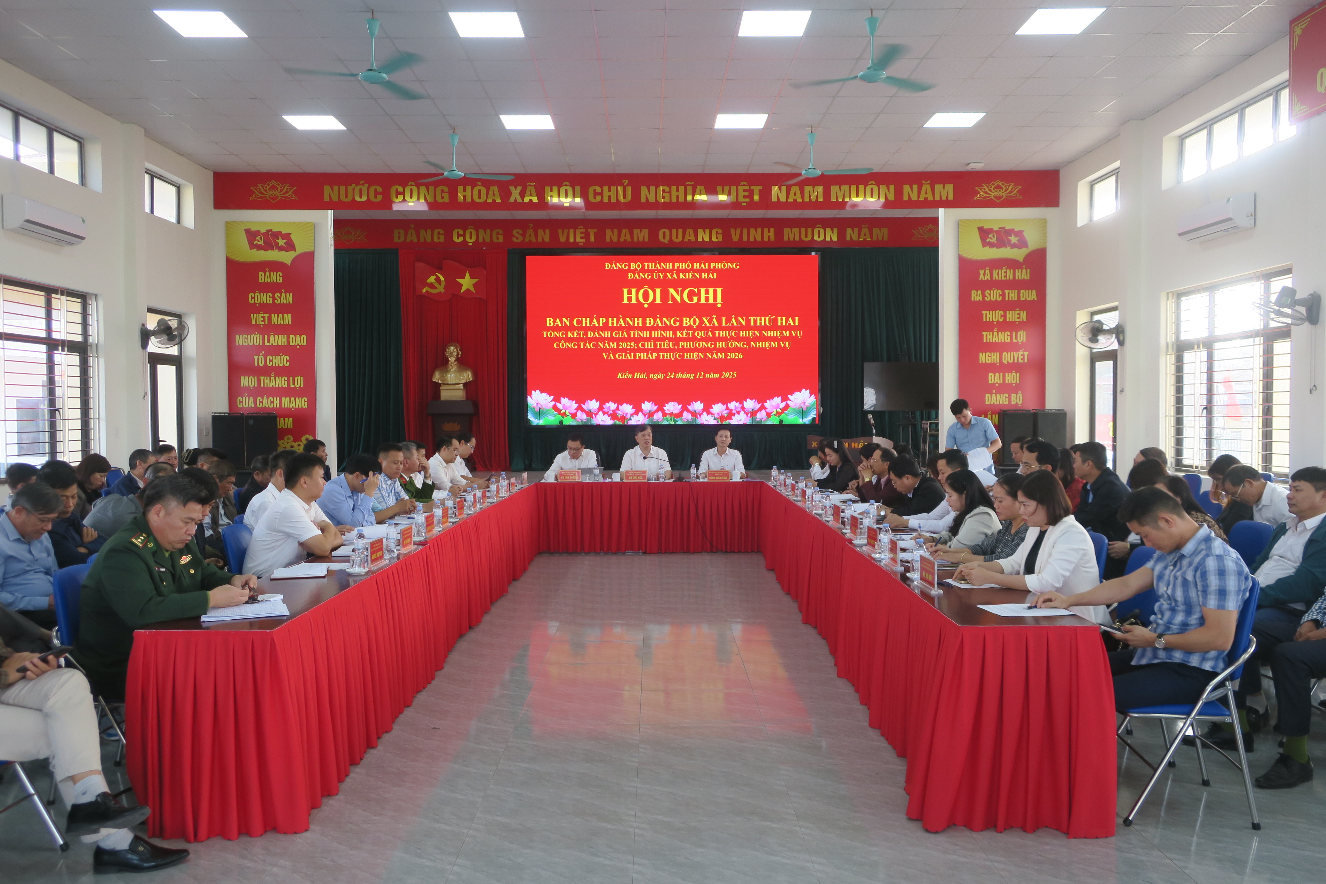 (Haiphong.gov.vn) - Chiều 24/12, Đảng ủy xã Kiến Hải tổ chức Hội nghị Ban Chấp hành Đảng bộ xã lần thứ hai, tổng kết, đánh giá tình hình, kết quả thực hiện nhiệm vụ công tác năm 2025; chỉ tiêu, phương hướng, nhiệm vụ và giải pháp thực hiện năm 2026. Đồng chí Đỗ Đức Hòa, Bí thư Đảng ủy, Chủ tịch HĐND xã chủ trì Hội nghị.