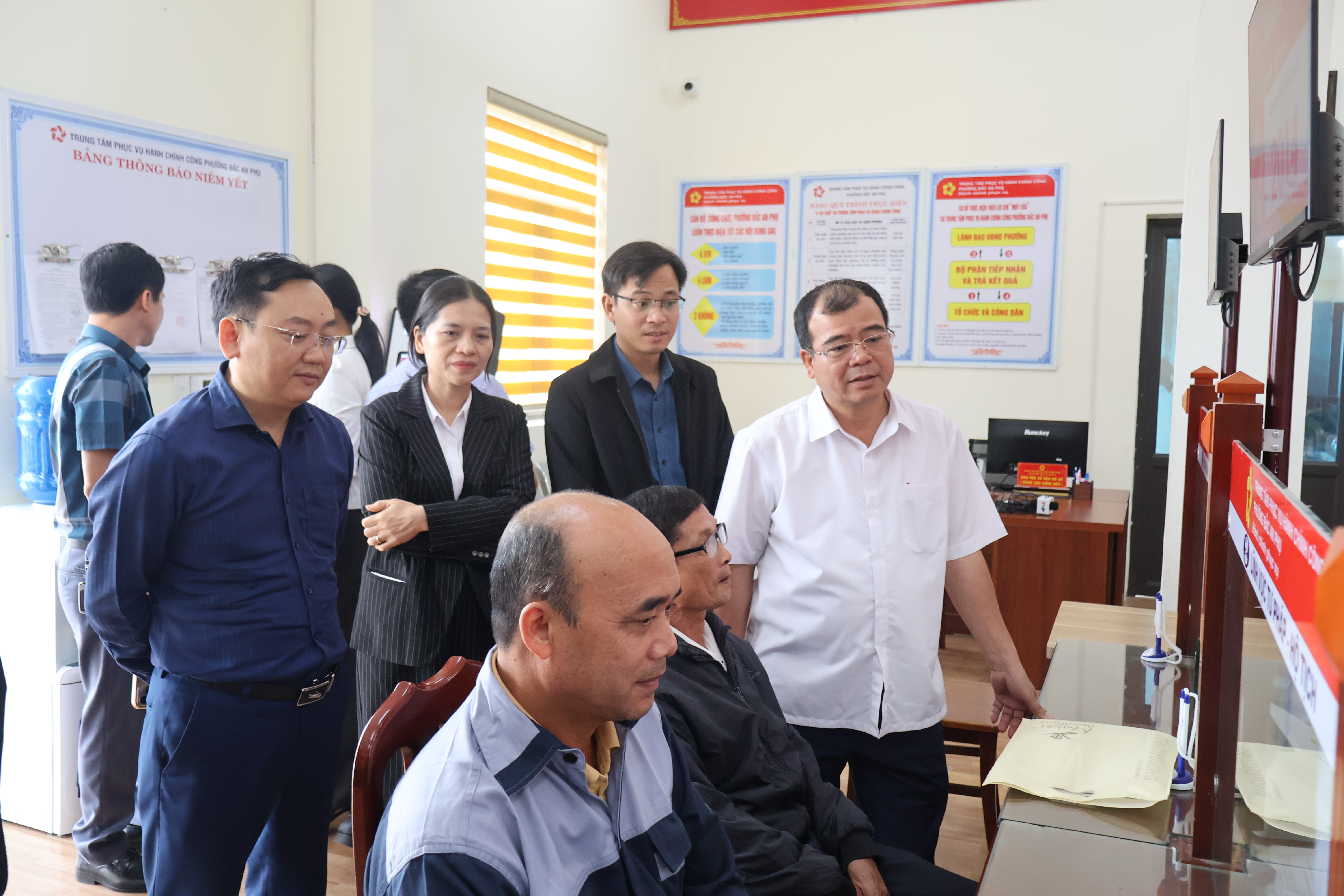 Phó Chủ tịch UBND thành phố Nguyễn Minh Hùng trao đổi với người dân tại Trung tâm Phục vụ hành chính công phường Bắc An Phụ