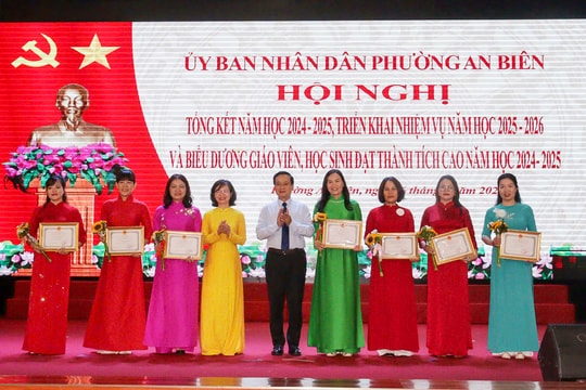 Tại hội nghị tổng kết năm học 2024 - 2025, phường An Biên biểu dương 46 giáo viên và 164 học sinh đạt thành tích xuất sắc trong giảng dạy, học tập.