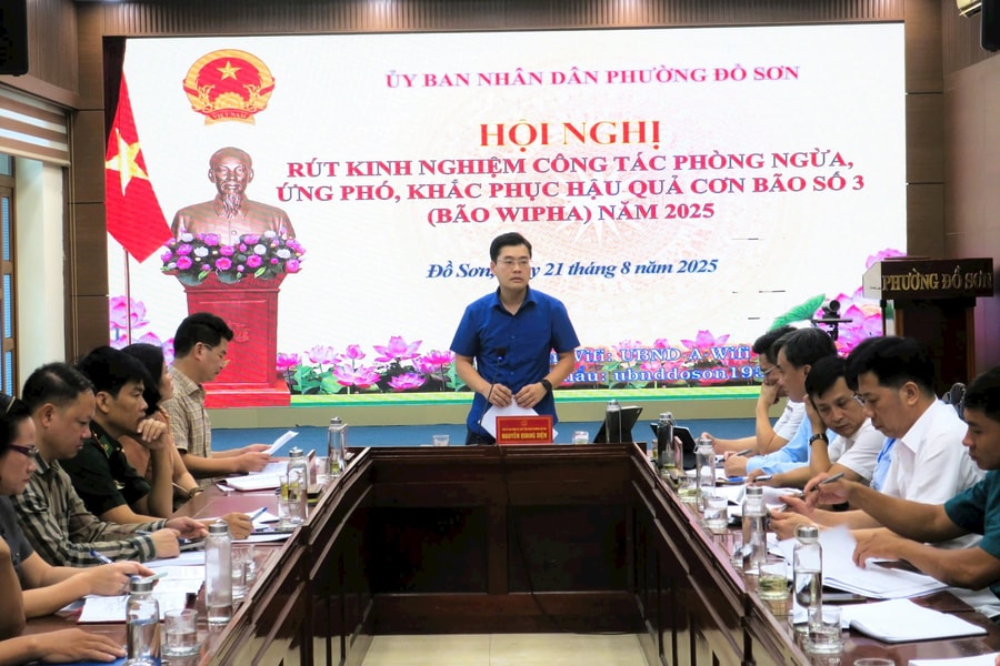 Chiều 21/8, UBND phường Đồ Sơn tổ chức hội nghị rút kinh nghiệm công tác phòng ngừa, ứng phó, khắc phục hậu quả cơn bão số 3 (bão Wipha) năm 2025.