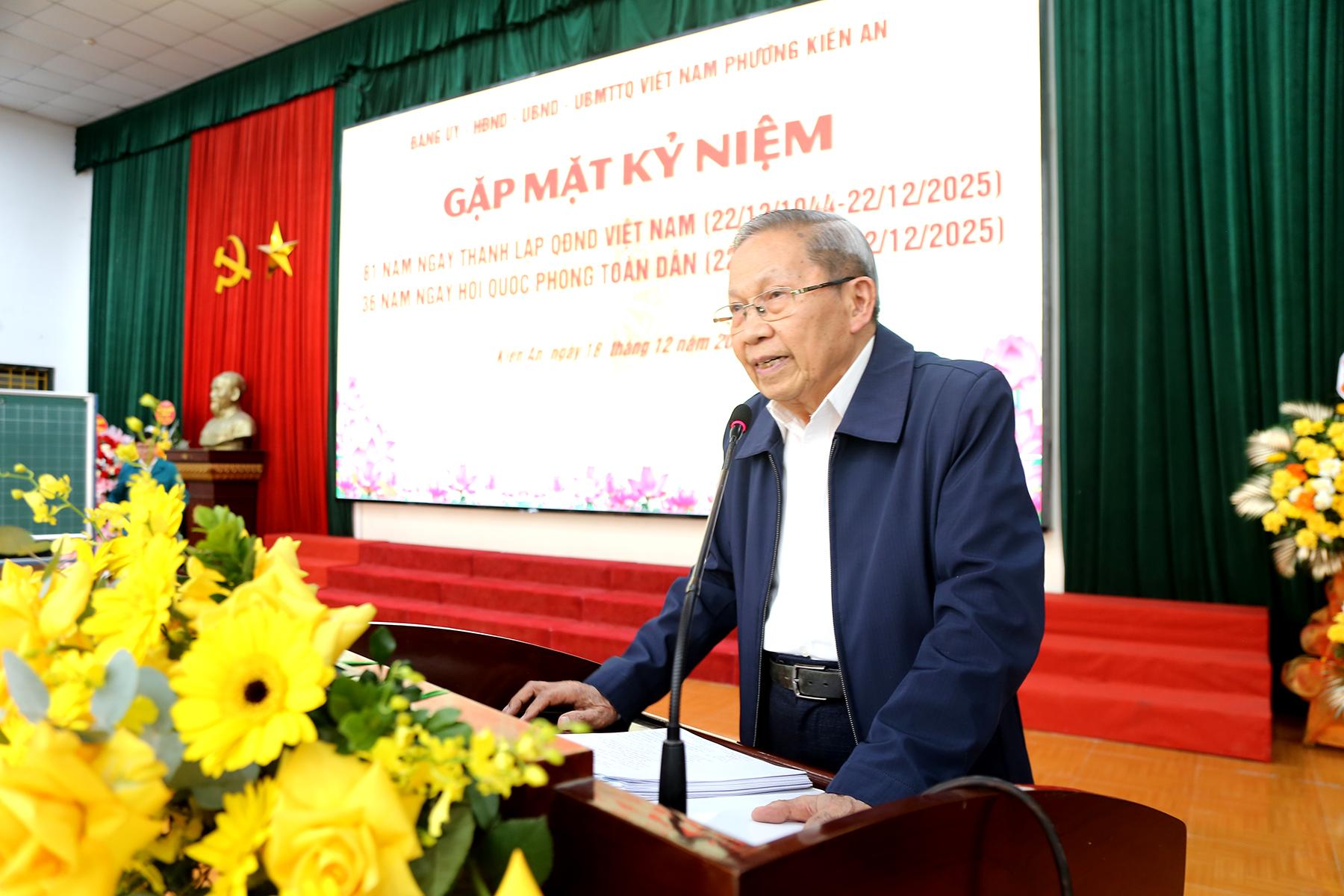 (Haiphong.gov.vn) – Nhân dịp kỷ niệm 81 năm Ngày thành lập Quân đội nhân dân Việt Nam (22/11/1944 – 22/12/2025); 36 năm Ngày hội Quốc phòng toàn dân (22/12/1989 – 22/12/2025), chiều 18/12, Đảng ủy – HĐND – UBND - Ủy ban MTTQ Việt Nam phường Kiến An tổ chức Gặp mặt cán bộ quân đội nghỉ hưu trên địa bàn.