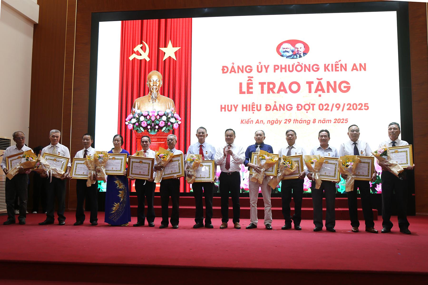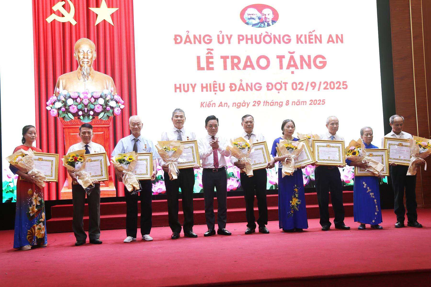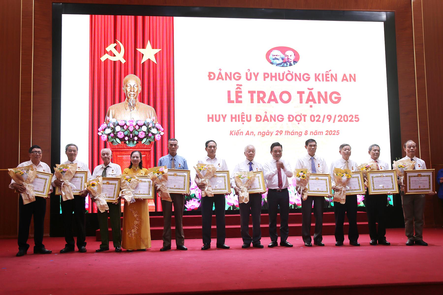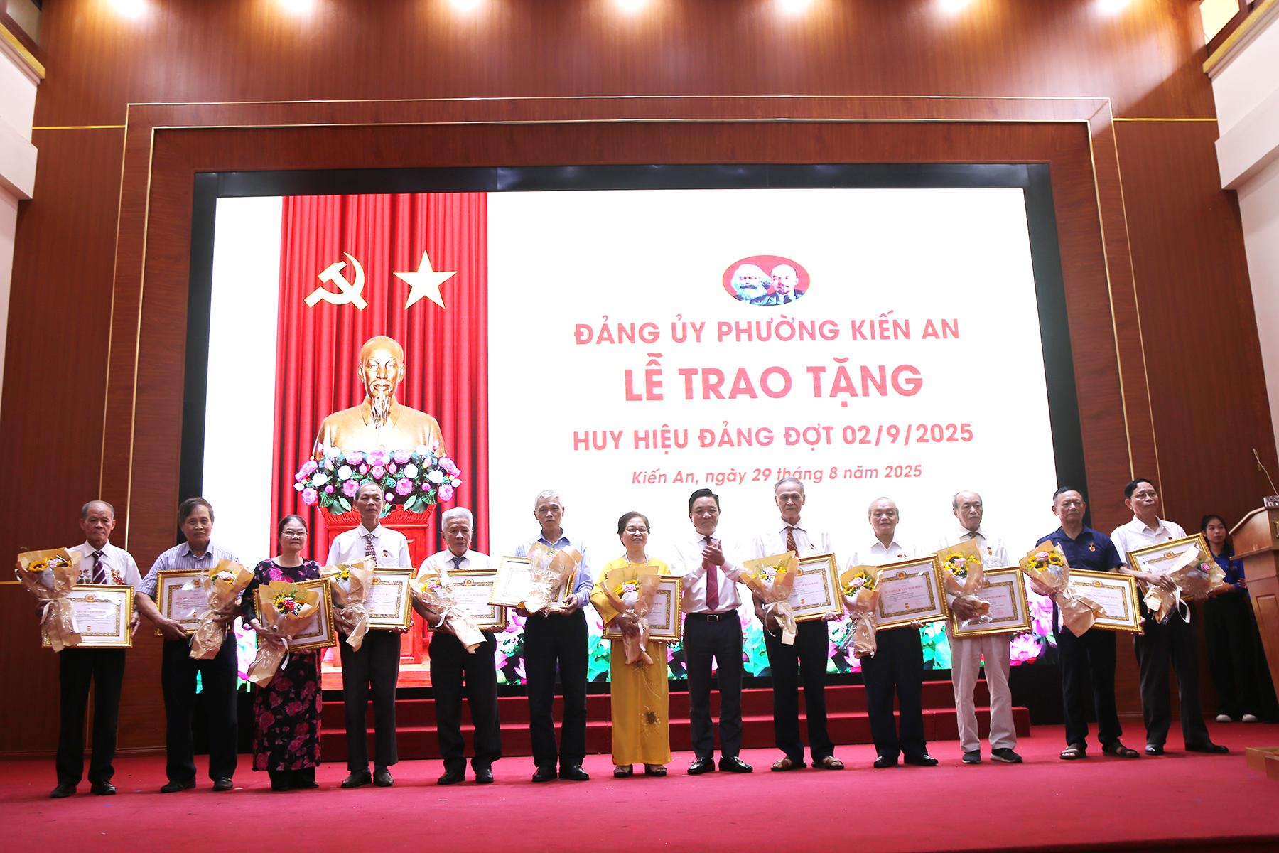 Theo Quyết định của Ban Thường vụ Thành ủy, đợt 2/9/2025, Đảng bộ phường Kiến An có 121 đảng viên được trao tặng Huy hiệu Đảng. Trong đó, 01 đồng chí được trao Huy hiệu 70 năm tuổi Đảng; 04 đồng chí 60 năm tuổi Đảng; 05 đồng chí 55 năm tuổi Đảng; 12 đồng chí 50 năm tuổi Đảng; 30 đồng chí 45 năm tuổi Đảng; 31 đồng chí 40 năm tuổi Đảng và 16 đồng chí 30 năm tuổi Đảng. Đây là niềm vinh dự, tự hào của mỗi đảng viên, đồng thời là nguồn động viên, cổ vũ để các thế hệ hôm nay tiếp tục phát huy truyền thống vẻ vang của Đảng.