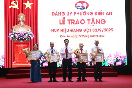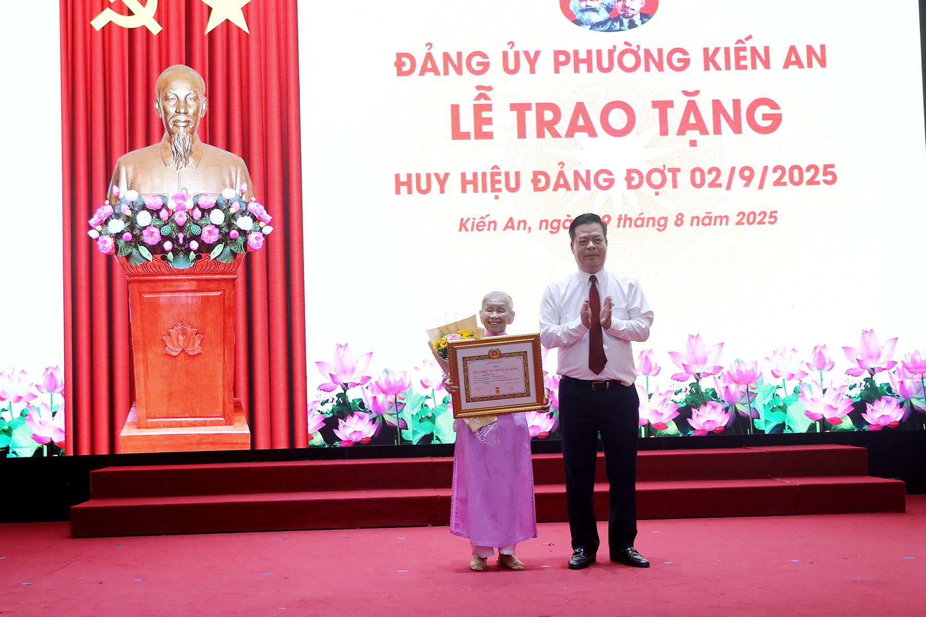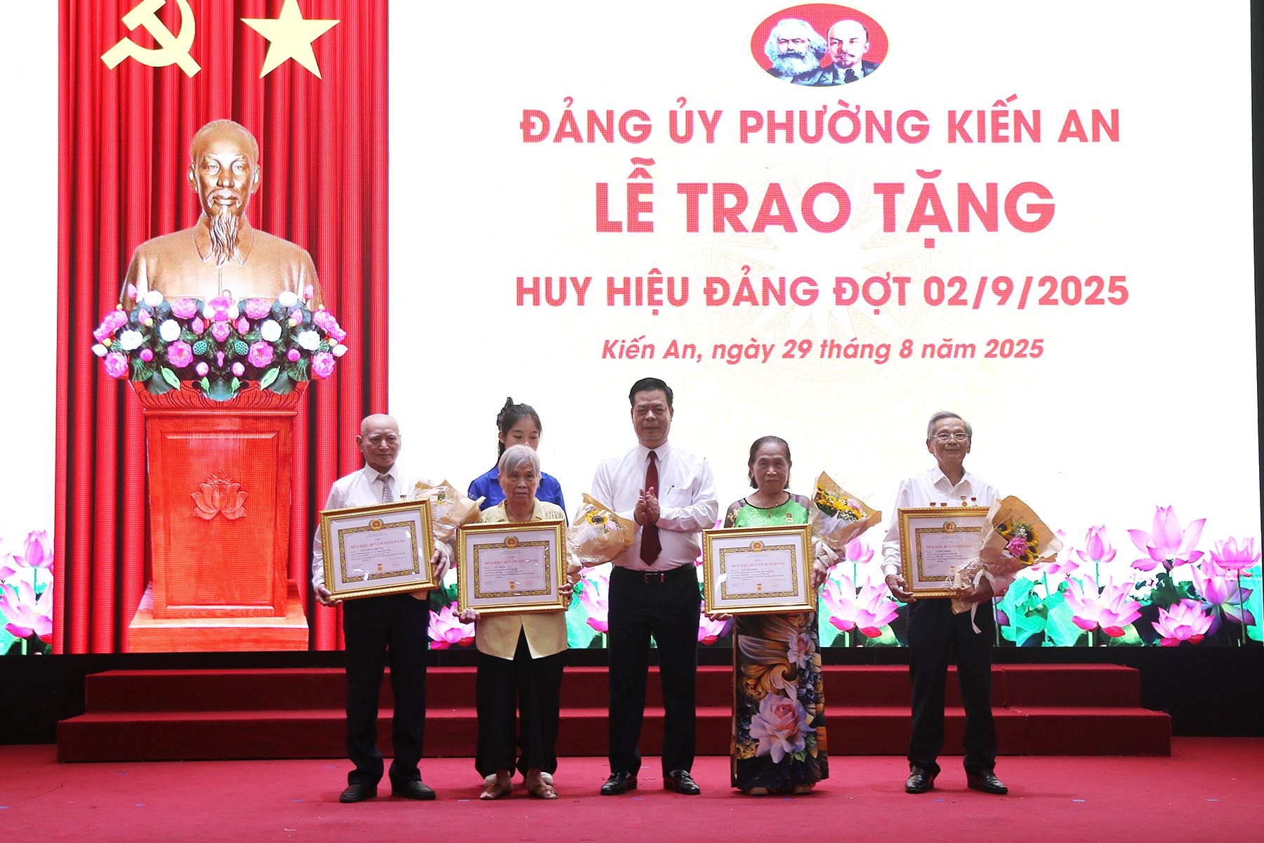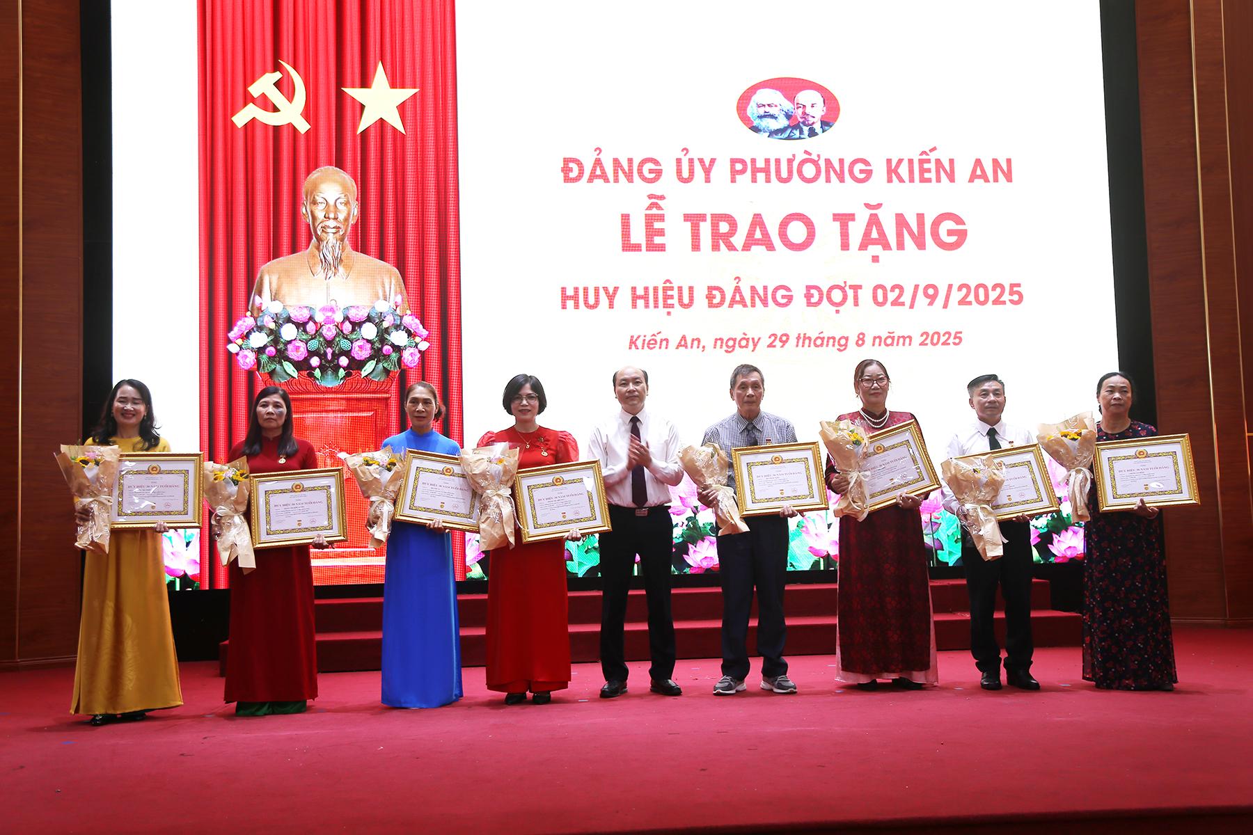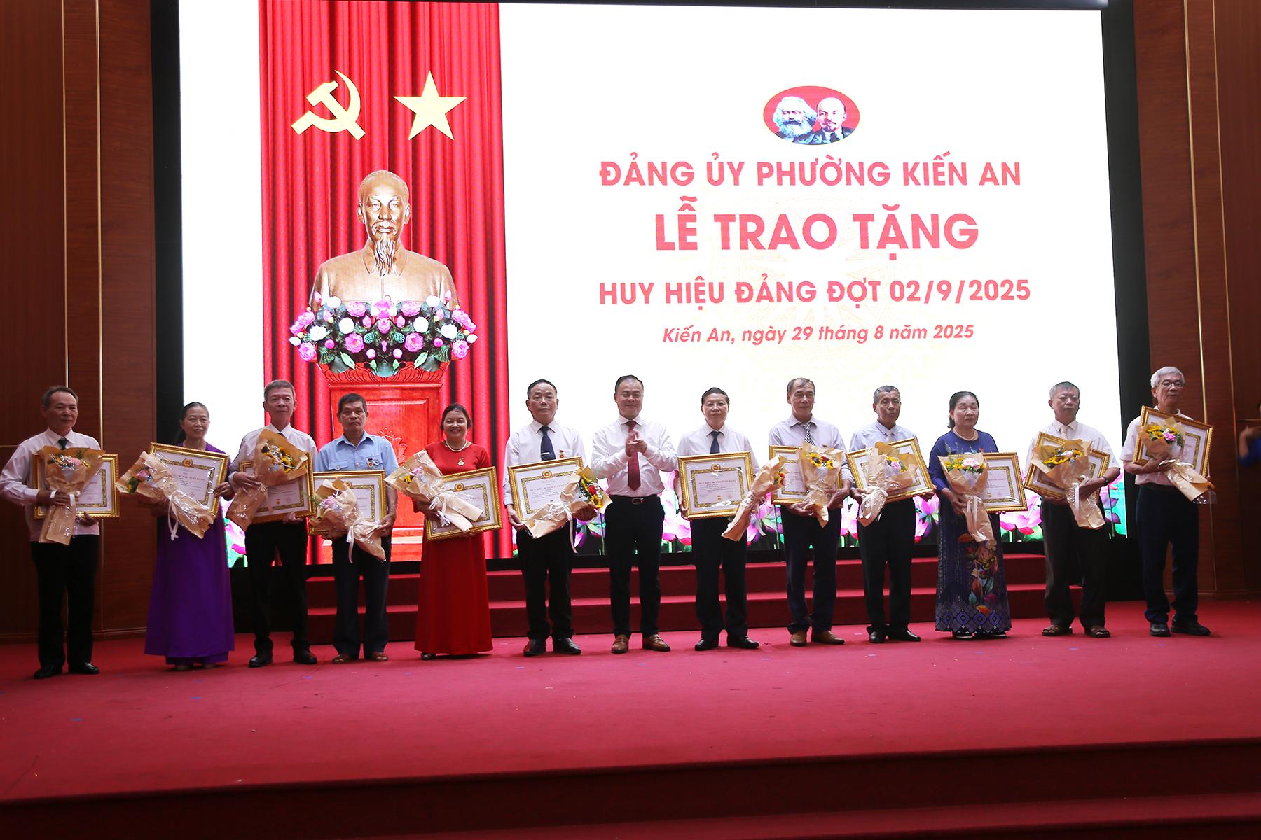 Theo Quyết định của Ban Thường vụ Thành ủy, đợt 2/9/2025, Đảng bộ phường Kiến An có 121 đảng viên được trao tặng Huy hiệu Đảng. Trong đó, 01 đồng chí được trao Huy hiệu 70 năm tuổi Đảng; 04 đồng chí 60 năm tuổi Đảng; 05 đồng chí 55 năm tuổi Đảng; 12 đồng chí 50 năm tuổi Đảng; 30 đồng chí 45 năm tuổi Đảng; 31 đồng chí 40 năm tuổi Đảng và 16 đồng chí 30 năm tuổi Đảng. Đây là niềm vinh dự, tự hào của mỗi đảng viên, đồng thời là nguồn động viên, cổ vũ để các thế hệ hôm nay tiếp tục phát huy truyền thống vẻ vang của Đảng.
