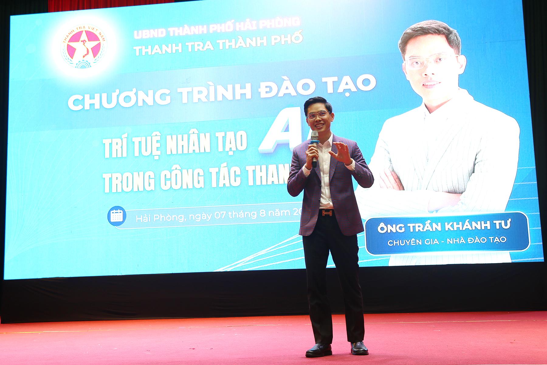 Tại Lớp tập huấn, chuyên gia Trần Khánh Tư – CEO Công ty Cổ phần Đào tạo trực tuyến Unica, Chủ tịch Học viện AI Việt Nam đã giới thiệu tổng quan về những xu hướng mới trong việc ứng dụng trí tuệ nhân tạo (AI) vào hoạt động thanh tra. Nội dung trình bày tập trung vào các ứng dụng nổi bật của AI trong thu thập và phân tích dữ liệu; đánh giá nguy cơ, rủi ro; hỗ trợ công tác giám sát, phát hiện hành vi vi phạm; cũng như trong việc lập kế hoạch và xây dựng quy trình thanh tra thông minh, có trọng tâm, trọng điểm. Bên cạnh phần lý thuyết, chuyên gia cũng trực tiếp hướng dẫn học viên cách sử dụng một số công cụ AI phổ biến trong công việc, từ đó giúp nâng cao kỹ năng ứng dụng công nghệ mới vào thực tiễn công tác, góp phần xây dựng ngành Thanh tra ngày càng hiện đại, hiệu quả, đáp ứng yêu cầu của thời kỳ chuyển đổi số.