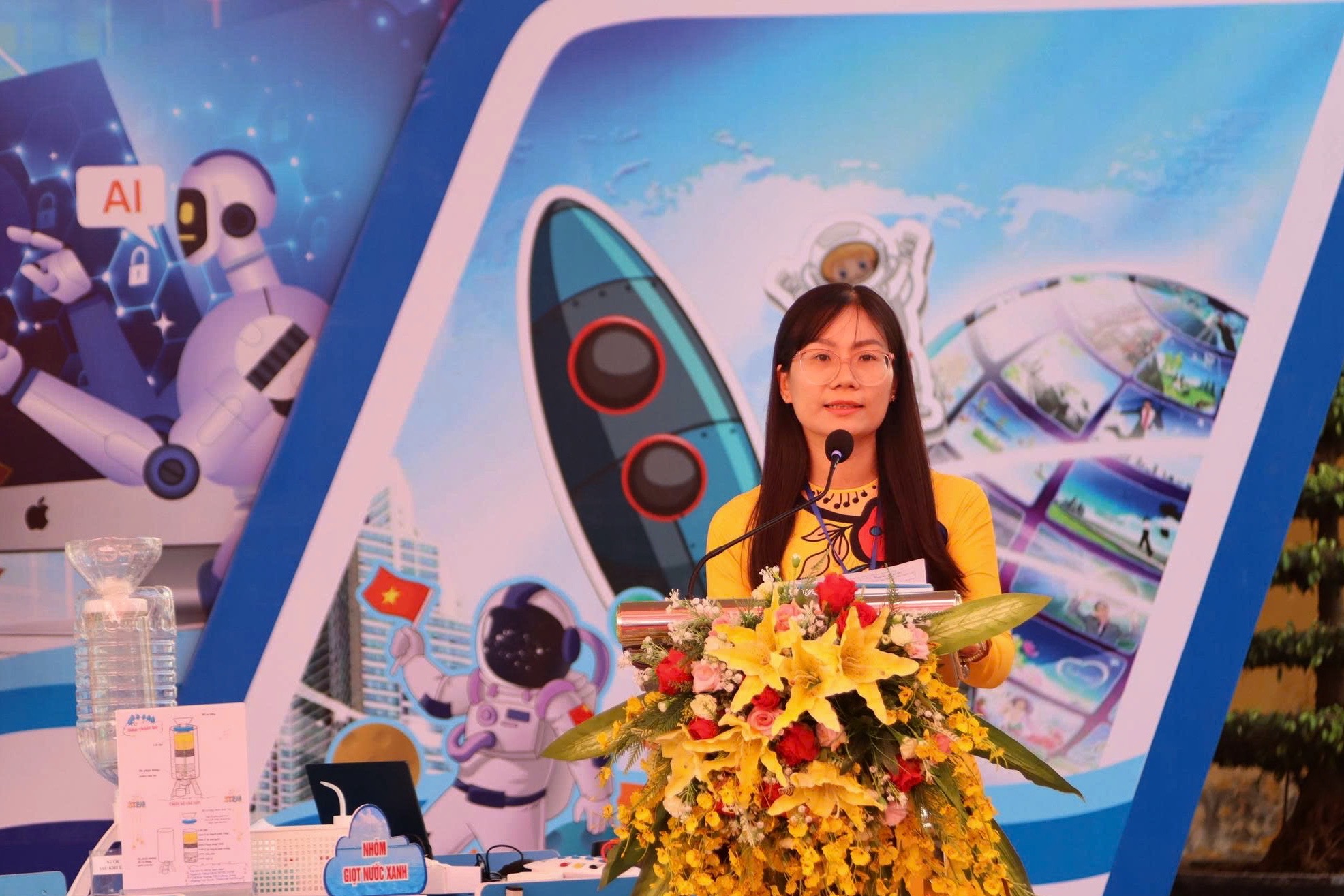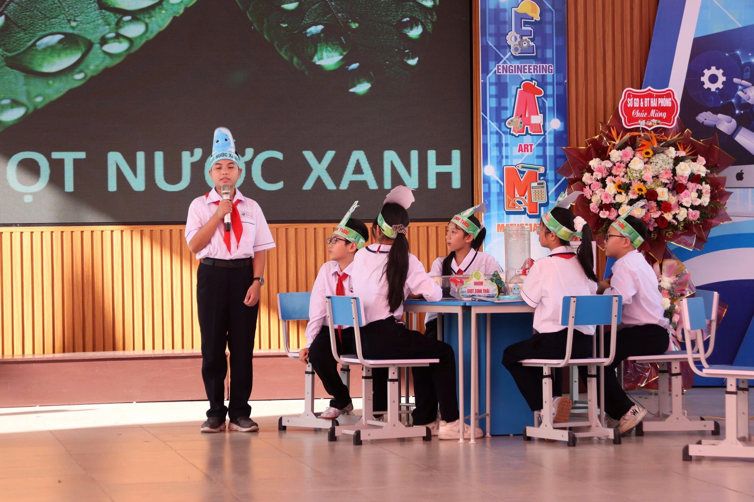 Tại chương trình, cô giáo Phan Thị Hằng – đại diện tổ Khoa học Tự nhiên, Chủ nhiệm CLB STEAM – trình bày báo cáo “Nâng cao chất lượng hoạt động Câu lạc bộ STEAM khối 6”. Phần thực nghiệm do cô giáo Thái Thu Hằng hướng dẫn với chủ đề “Trải nghiệm STEAM – Khám phá hành trình sản xuất nước sạch”, giúp học sinh tìm hiểu quy trình tạo ra nước sạch, rèn luyện ý thức bảo vệ môi trường và nguồn nước.