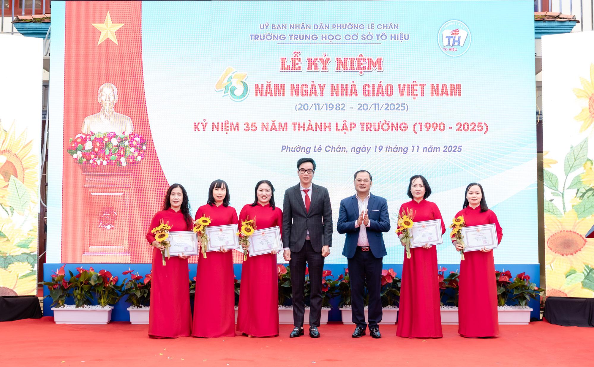 (Haiphong.gov.vn) - Ngày 19/11, Trường THCS Tô Hiệu (phường Lê Chân) tổ chức kỷ niệm 43 năm Ngày Nhà giáo Việt Nam (20/11/1982 - 20/11/2025) và 35 năm Ngày thành lập trường (1990 - 2025). Tới dự có đồng chí Nguyễn Thị Minh Ngọc, Phó Bí thư Thường trực Đảng ủy phường.