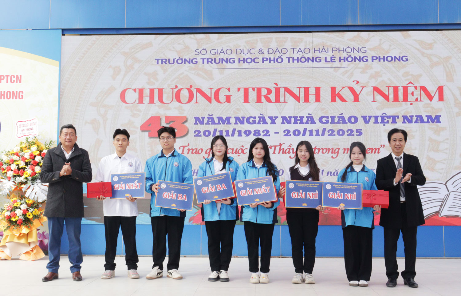 Nhân dịp này, Bộ Giáo dục và Đào tạo tặng Bằng khen cho tập thể Trường THPT Lê Hồng Phong và 3 cá nhân; nhiều cá nhân được nhận Giấy khen của Sở Giáo dục và Đào tạo, phường Hồng Bàng. Trường cũng biểu dương, khen thưởng các học sinh có thành tích trong tham gia các cuộc thi do thành phố, trường tổ chức./.