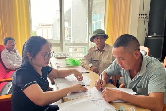 Người dân xã Phú Thái có đất thu hồi bổ sung thực hiện Dự án xây dựng nút giao liên thông kết nối quốc lộ 17B với quốc lộ 5, đường sắt Hà Nội - Hải Phòng ký nhận tiền hỗ trợ bồi thường.