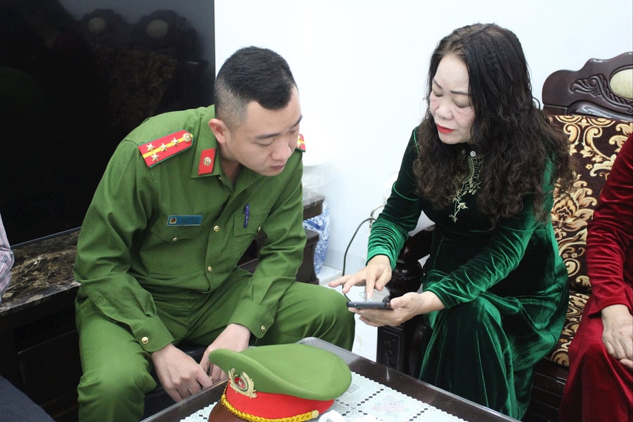 Công an phường Gia Viên (Hải Phòng) hướng dẫn đảng viên Chi bộ tổ dân phố 12 góp ý vào dự thảo văn kiện Đại hội Đảng qua VNeID.