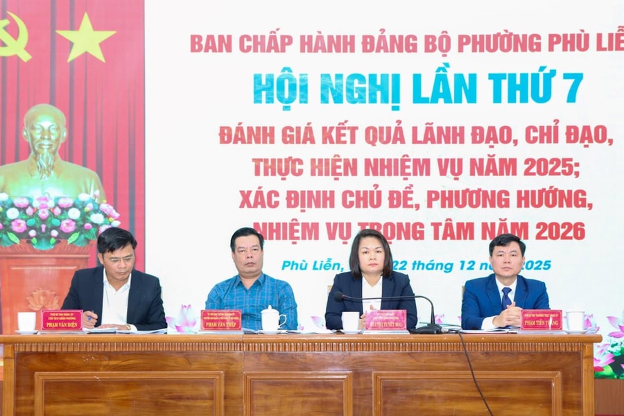 Sáng 22/12, Ban Chấp hành Đảng bộ phường Phù Liễn (Hải Phòng) tổ chức hội nghị đánh giá kết quả lãnh đạo, chỉ đạo thực hiện nhiệm vụ năm 2025; xác định chủ đề, phương hướng, nhiệm vụ trọng tâm năm 2026.