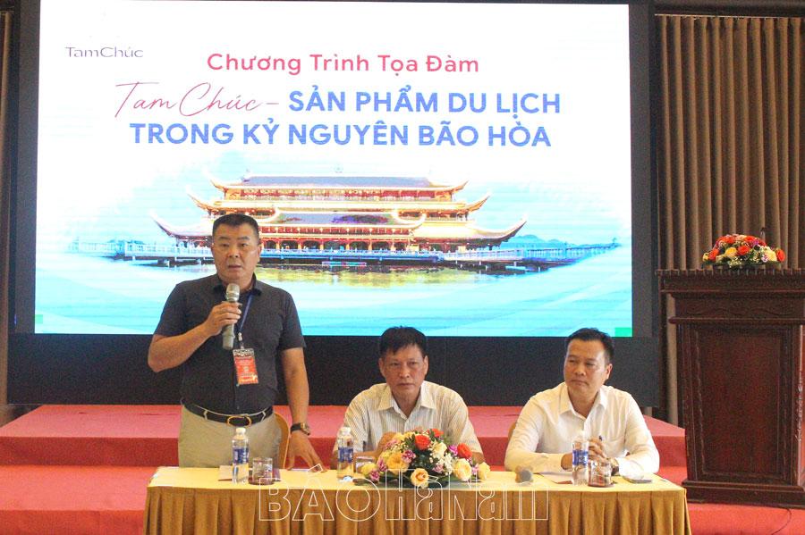 Tại buổi tọa đàm, sau khi nghe giới thiệu tổng quan về Khu Du lịch Tam Chúc, các doanh nghiệp du lịch, lữ hành đã thảo luận, chia sẻ kinh nghiệm, đề xuất giải pháp thúc đẩy phát triển các sản phẩm du lịch Hà Nam nói chung, Khu Du lịch Tam Chúc nói riêng.