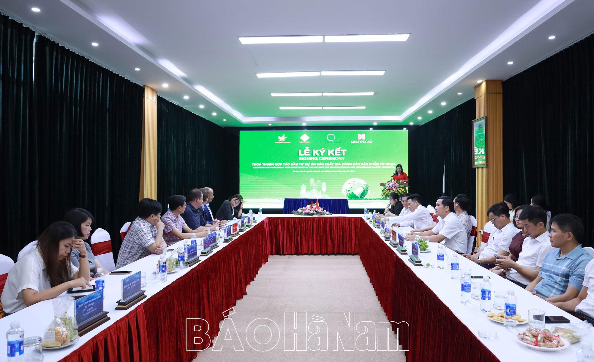 Tại chương trình, đại diện lãnh đạo Công ty cổ phần Tập đoàn Globe Holdings, Tập đoàn Elevated Elements Group và Tập đoàn Multiply AG đã giới thiệu khái quát về sự hình thành, phát triển, các sản phẩm chính do doanh nghiệp sản xuất, kinh doanh. Đồng thời, thảo luận, trao đổi, làm rõ về định hướng chiến lược kinh doanh của doanh nghiệp, tập đoàn trong thời gian tới. Theo đó, Công ty cổ phần Tập đoàn Globe Holdings đã có hơn 20 năm hoạt động trong lĩnh vực sản xuất dầu đốt lò. Sự hợp tác giữa các bên trong sản xuất, tiêu thụ các sản phẩm từ nhựa tái chế sẽ mang lại giá trị cho cộng đồng và xã hội, góp phần giải bài toán rác thải nhựa trong môi trường.