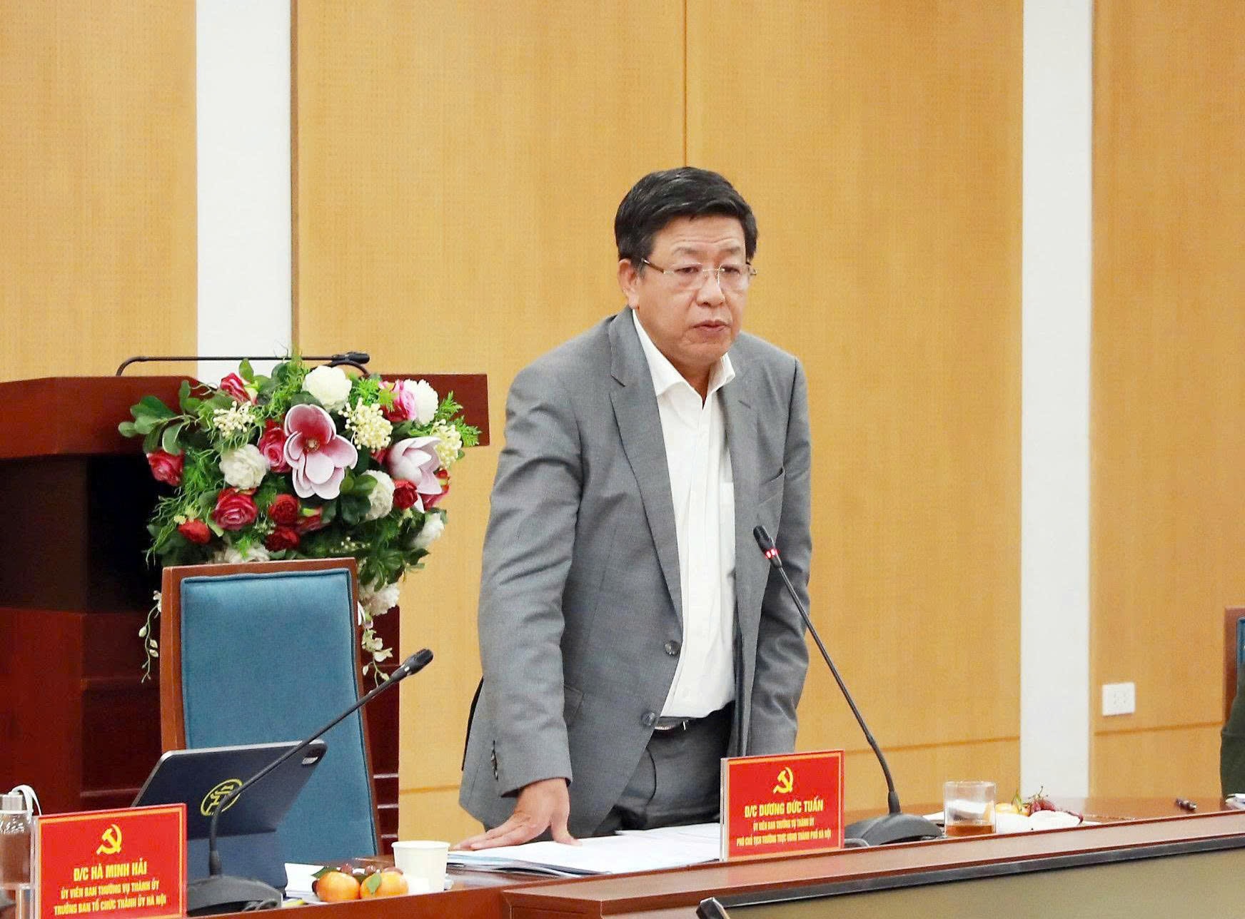 Uỷ viên Ban Thường vụ Thành uỷ, Phó Chủ tịch Thường trực UBND thành phố Dương Đức Tuấn phát biểu tại cuộc làm việc