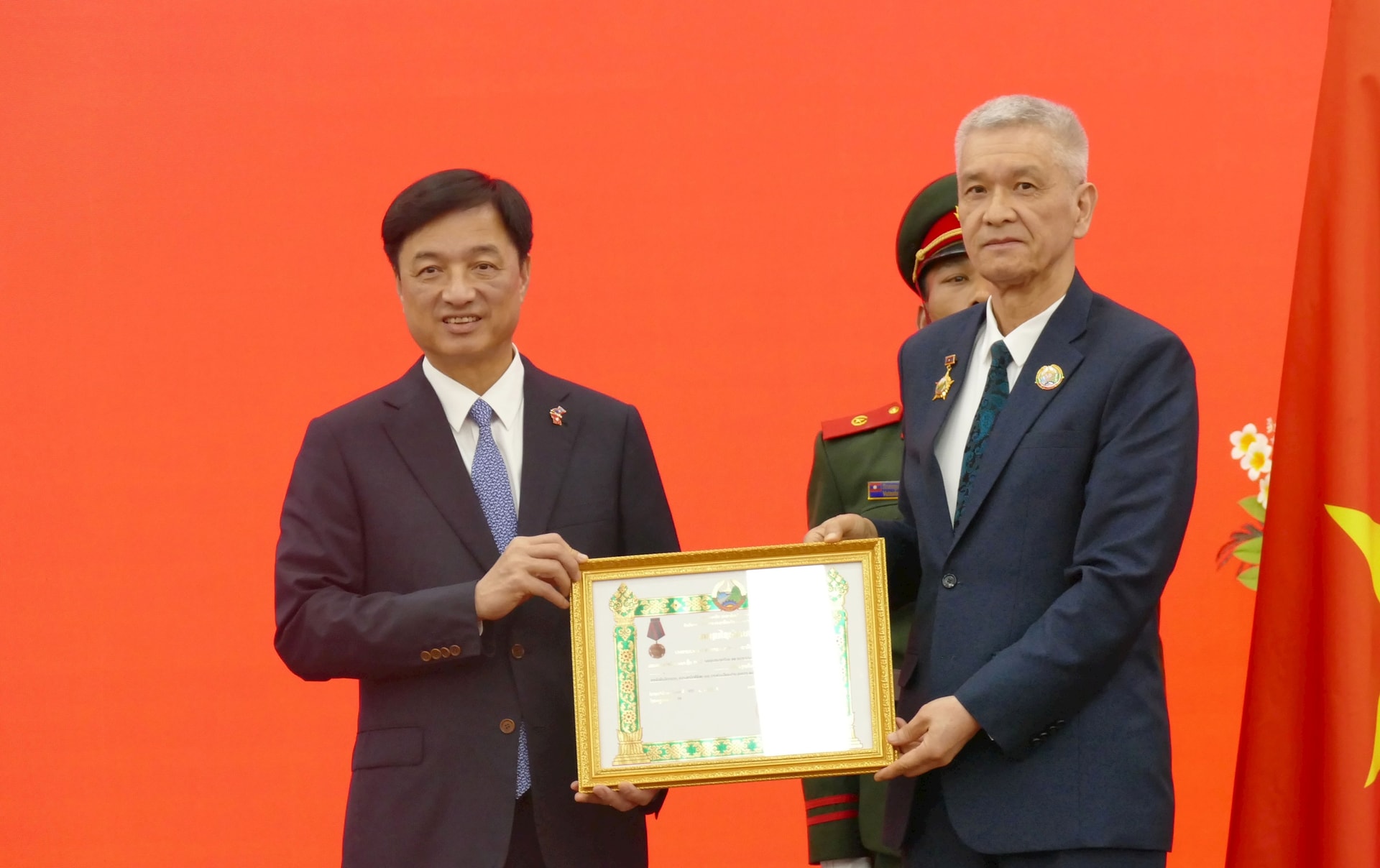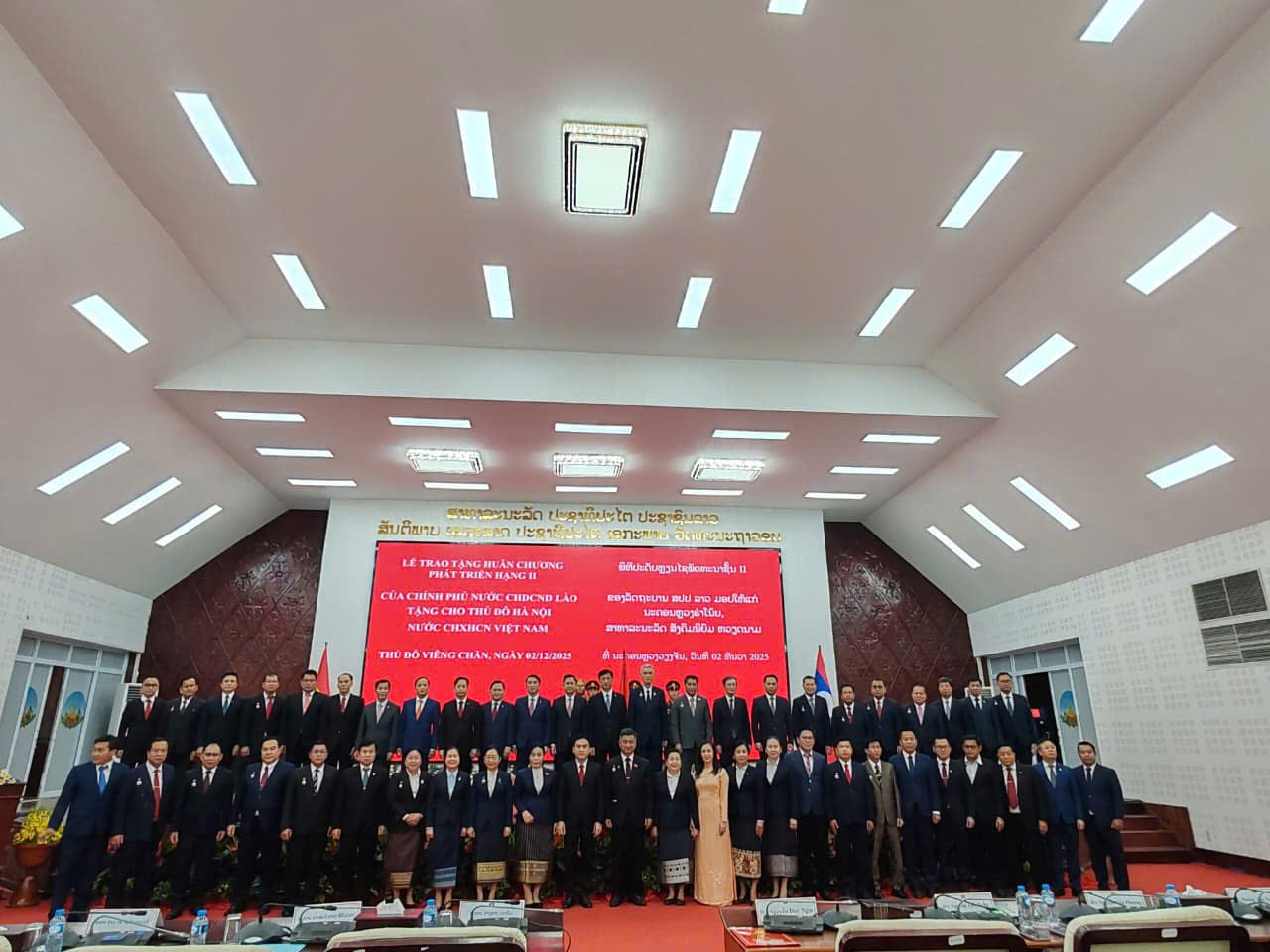 *Chiều cùng ngày, đã diễn ra Lễ trao Huân chương Phát triển hạng 2 dành cho thành phố Hà Nội vì những đóng góp tích cực cho sự phát triển hợp tác giữa hai Thủ đô Hà Nội và Viêng Chăn, tiêu biểu là Dự án hỗ trợ phát triển của Hà Nội về xây dựng trụ sở Sở Tư pháp và Viện Kiểm sát nhân dân Thủ đô Viêng Chăn, đã khánh thành vào tháng 4-2024. Đây là công trình tiêu biểu cho mối quan hệ hữu nghị bền chặt giữa hai Thủ đô và cho sự phát triển xã hội của Thủ đô Viêng Chăn.