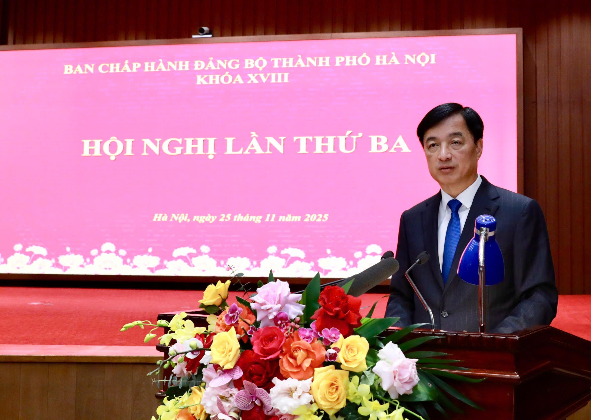 Chiều 25-11, Ban Chấp hành Đảng bộ thành phố Hà Nội (khóa XVIII) tiến hành Hội nghị lần thứ ba họp bàn một số nội dung quan trọng về kinh tế - xã hội, tài chính - ngân sách, đầu tư công; phân cấp quản lý cán bộ.