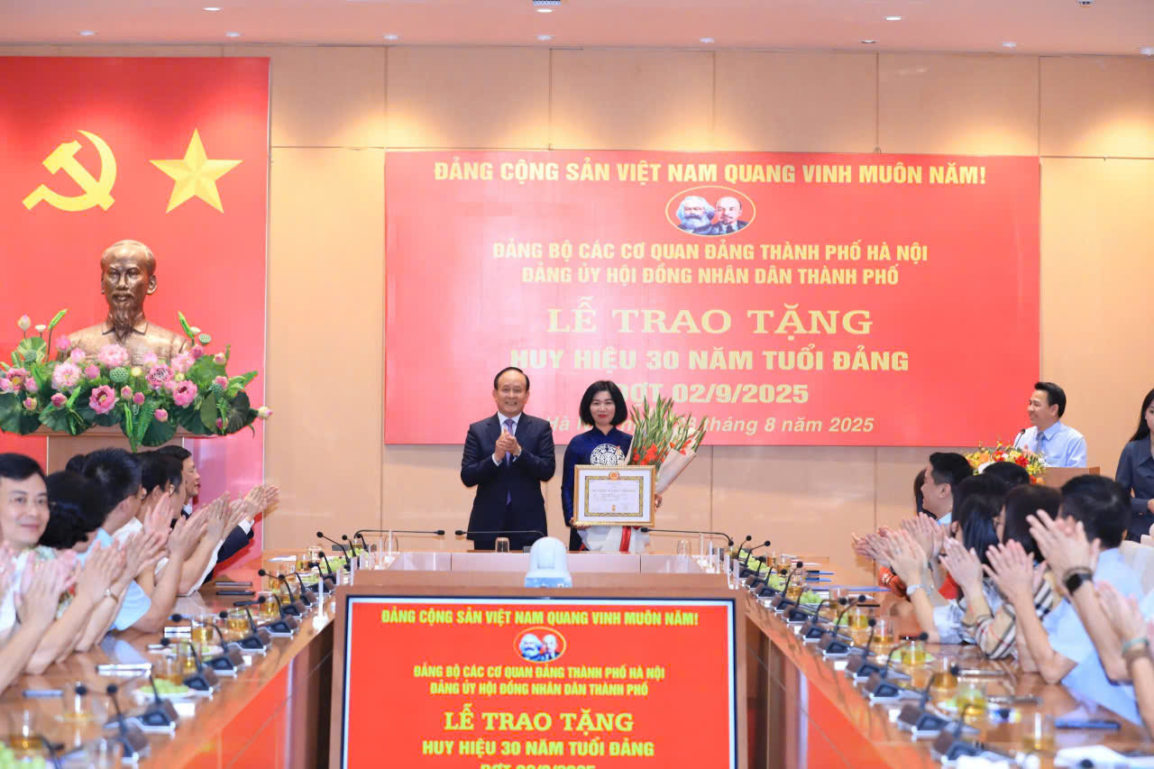 Phó Chủ tịch Thường trực HĐND thành phố Hà Nội Phùng Thị Hồng Hà vinh dự đón nhận Huy hiệu 30 năm tuổi Đảng