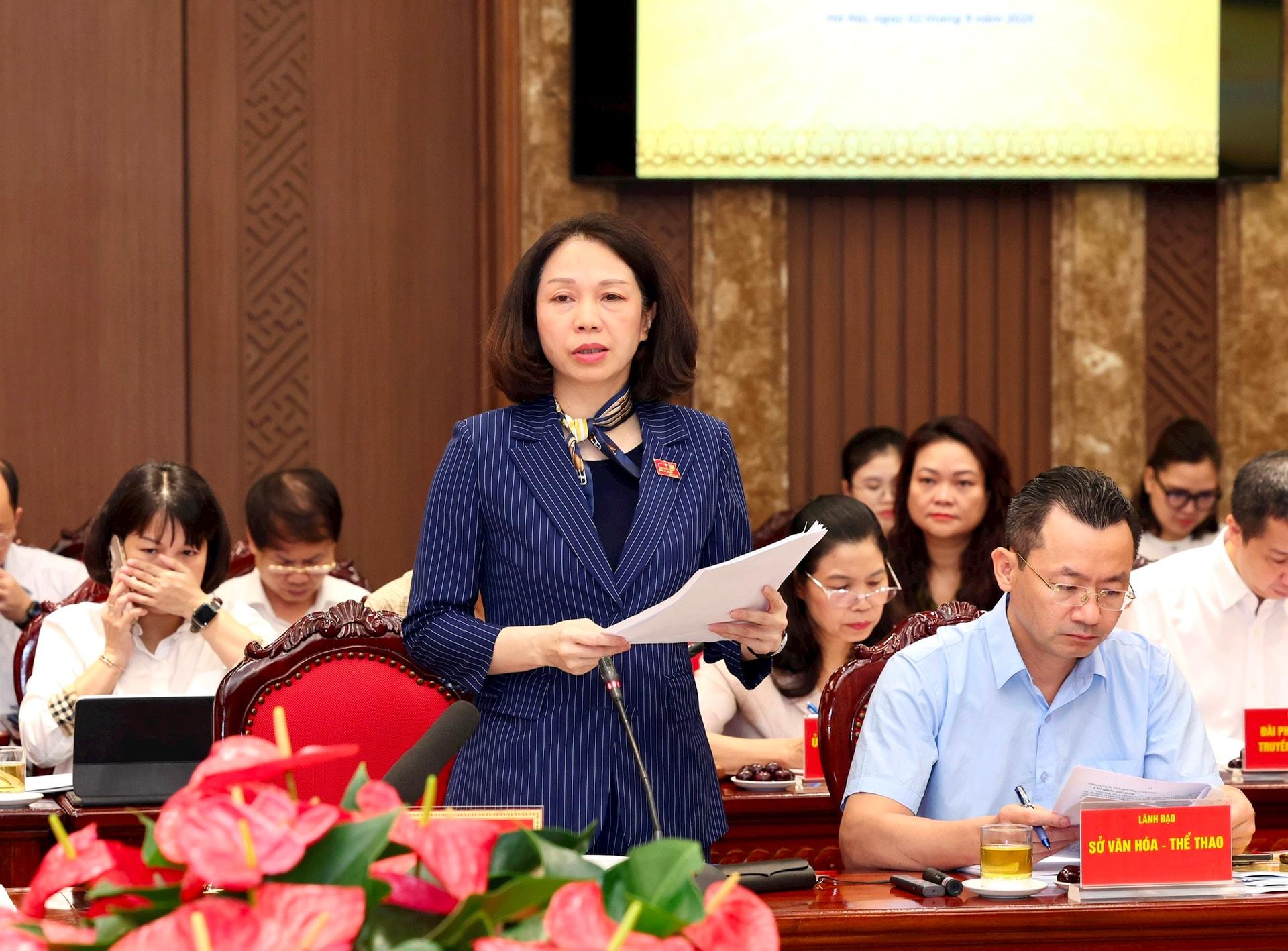 Uỷ viên Bộ Chính trị, Bí thư Thành ủy Hà Nội Bùi Thị Minh Hoài phát biểu tại cuộc làm việc