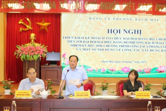Chiều 10-7, Ban Thường vụ Đảng ủy phường Bạch Mai tổ chức Hội nghị triển khai Kế hoạch tổ chức Đại hội đại biểu Đảng bộ phường Bạch Mai lần thứ I, nhiệm kỳ 2025 - 2030; Chương trình công tác của Ban Chấp hành Đảng bộ, Ban Thường vụ Đảng ủy phường 6 tháng cuối năm 2025 và một số nội dung về công tác xây dựng Đảng.