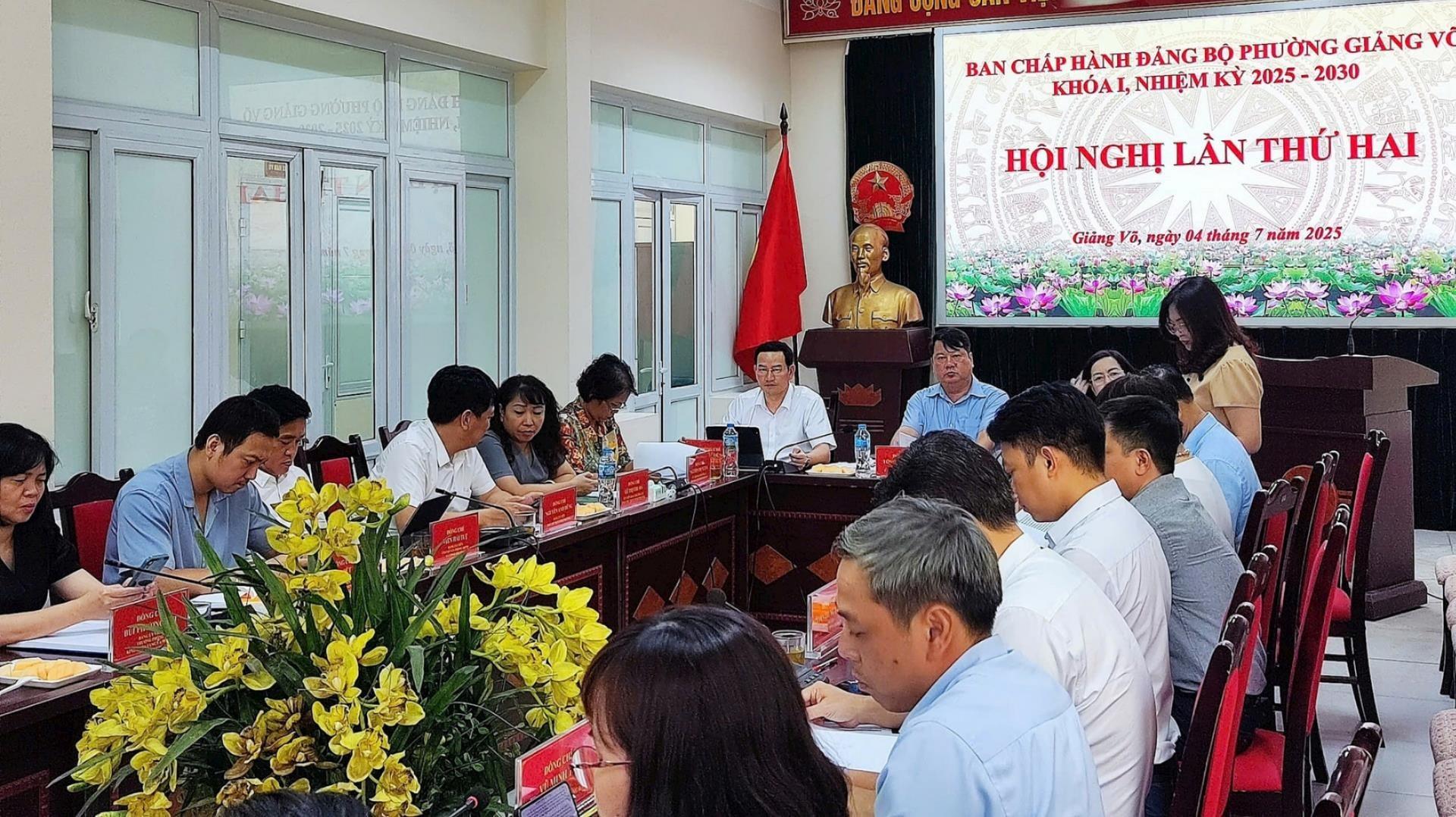 Song song với công tác tiếp nhận, giải quyết thủ tục hành chính phục vụ người dân, doanh nghiệp, phường Giảng Võ đã bắt tay ngay vào thực hiện các nhiệm vụ chính trị, xã hội quan trọng trên địa bàn. Trong đó, trọng tâm là công tác chuẩn bị triển khai tổ chức Đại hội Đảng bộ phường lần thứ I, nhiệm kỳ 2025-2030; tập trung lãnh đạo, chỉ đạo hoàn thành và hoàn thành vượt mức các nhiệm vụ, chỉ tiêu phát triển kinh tế - xã hội năm 2025…