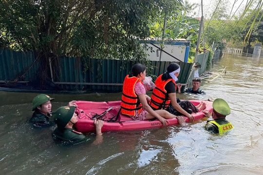 Trước tình hình đó, Công an và Quân đội thành phố Hà Nội đã huy động tối đa lực lượng, cùng thiết bị chuyên dụng đến hiện trường, phối hợp với chính quyền và các đoàn thể địa phương triển khai ứng phó khẩn cấp. Các lực lượng đã hỗ trợ người dân di dời, vận chuyển tài sản, gia cố đê điều, phân luồng giao thông, tiếp tế nhu yếu phẩm cho các hộ bị cô lập, đồng thời bảo đảm an ninh, trật tự trên địa bàn.