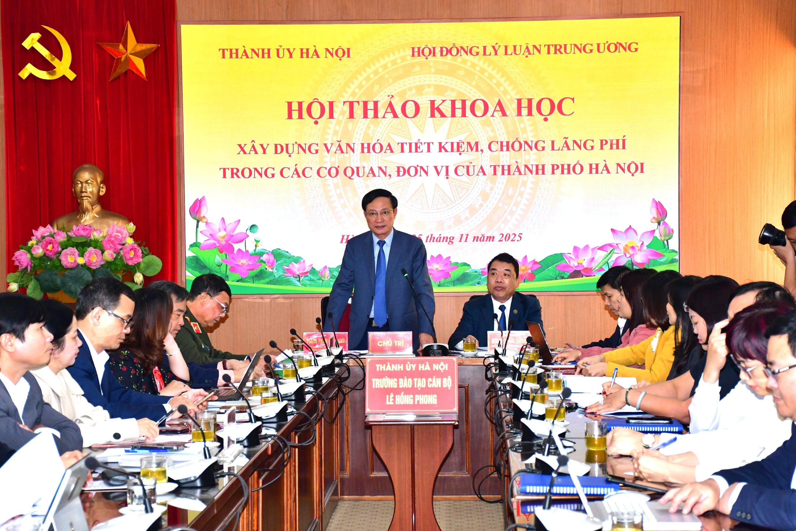 Kết luận hội thảo, PGS.TS Phạm Minh Anh, Hiệu trưởng Trường đào tạo cán bộ Lê Hồng Phong đánh giá cao chất lượng tham luận, khẳng định kết quả hội thảo góp phần hoàn thiện cơ sở lý luận cho việc hình thành văn hóa tiết kiệm như một bộ phận quan trọng của hệ giá trị Hà Nội. Những giải pháp được nêu ra, từ phát huy vai trò người đứng đầu đến thúc đẩy chuyển đổi số, đều có tính khả thi và có thể triển khai ngay trong thực tiễn. Với quyết tâm chính trị cao, Hà Nội kỳ vọng những định hướng từ hội thảo sẽ sớm được cụ thể hóa, tạo chuyển biến rõ nét trong xây dựng nền hành chính tiết kiệm, hiệu quả, hiện đại, xứng đáng với vị thế Thủ đô ngàn năm văn hiến.
