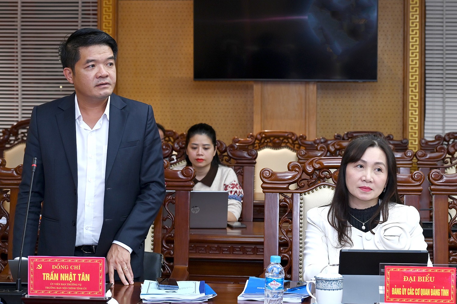 Trưởng ban Nội chính Tỉnh ủy Trần Nhật Tân phát biểu góp ý tại cuộc họp.