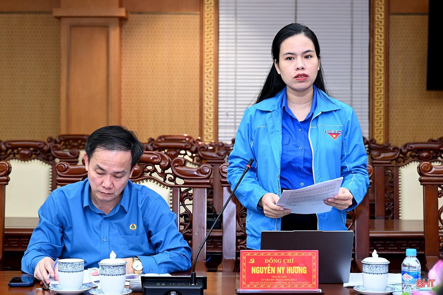 Bí thư Tỉnh đoàn Nguyễn Ny Hương báo cáo tiến độ chuẩn bị Đại hội Đoàn TNCS tỉnh.